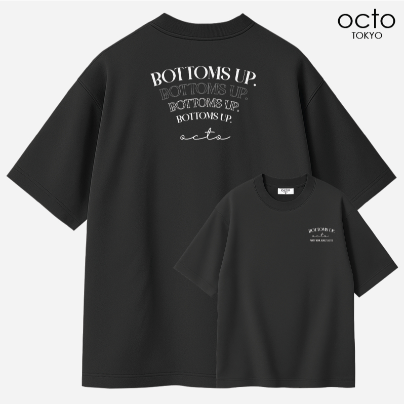 เสื้อยืดทรงโอเวอร์ไซส์ octoTOKYO รุ่น Airly ลาย Bottoms Up | ผ้า Premium Cotton 100% นุ่ม สบาย ระบายอากาศดี