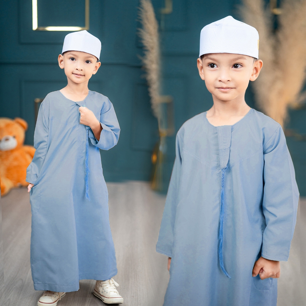 โต๊ปโอมานเด็กแขนยาว สินค้านำเข้าจากต่างประเทศ เหมาะสำหรับใส่ละหมาดออกงานอิสลาม BA31วาริสมุสลิม EP2.