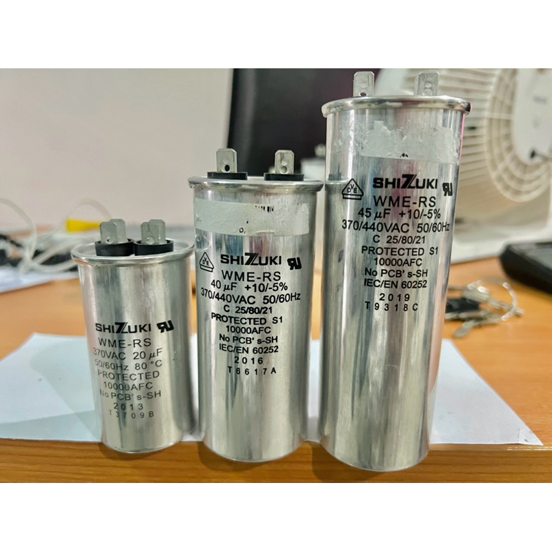 คาปาซิเตอร์ชิซูกิ(แท้)SHIZUKI,แคปรัน,มีหลายยี่ห้อให้เลือก (สำหรับแอร์บ้าน 20-55uf) อะไหล่แอร์แท้