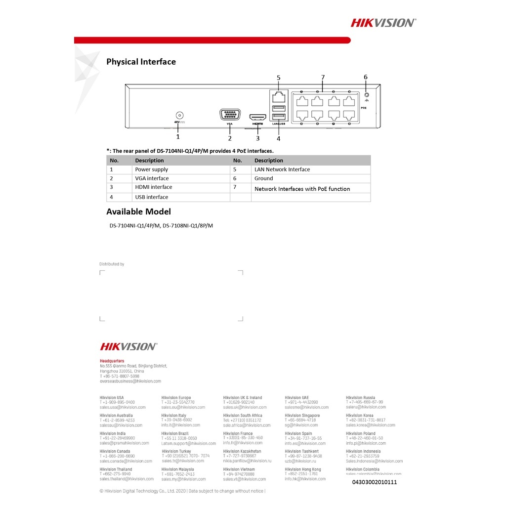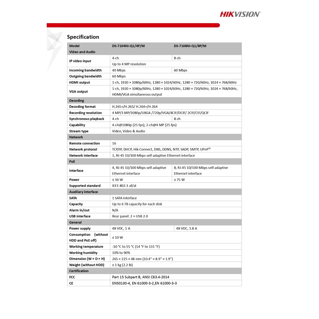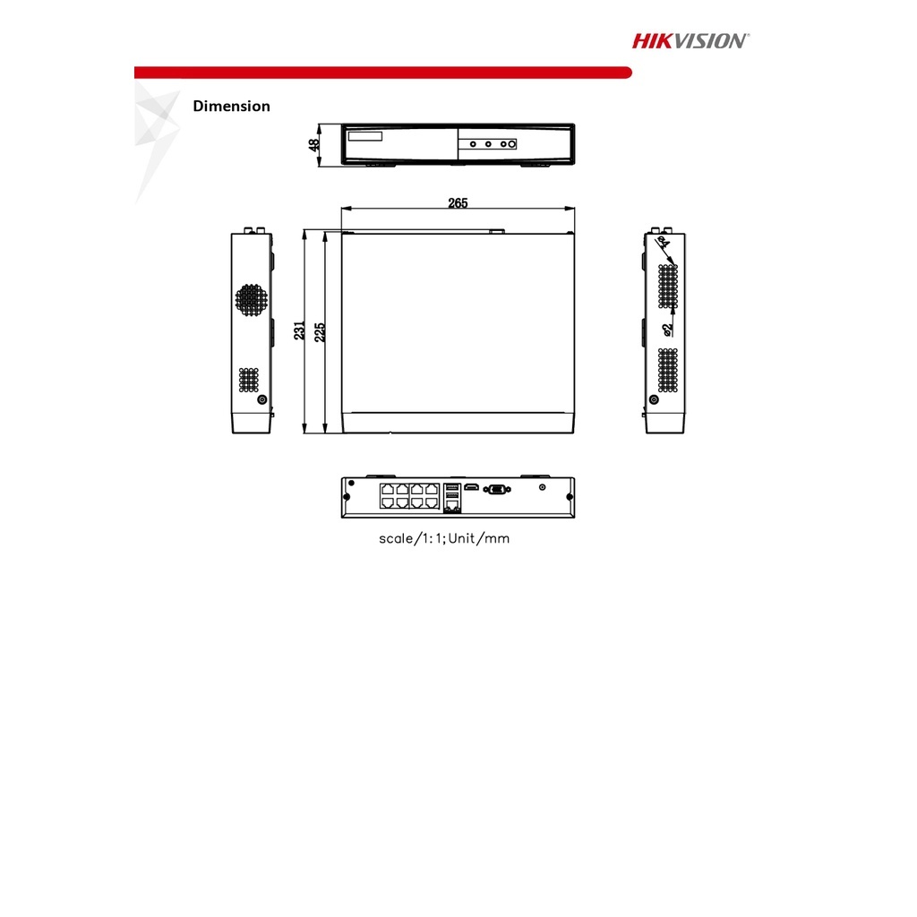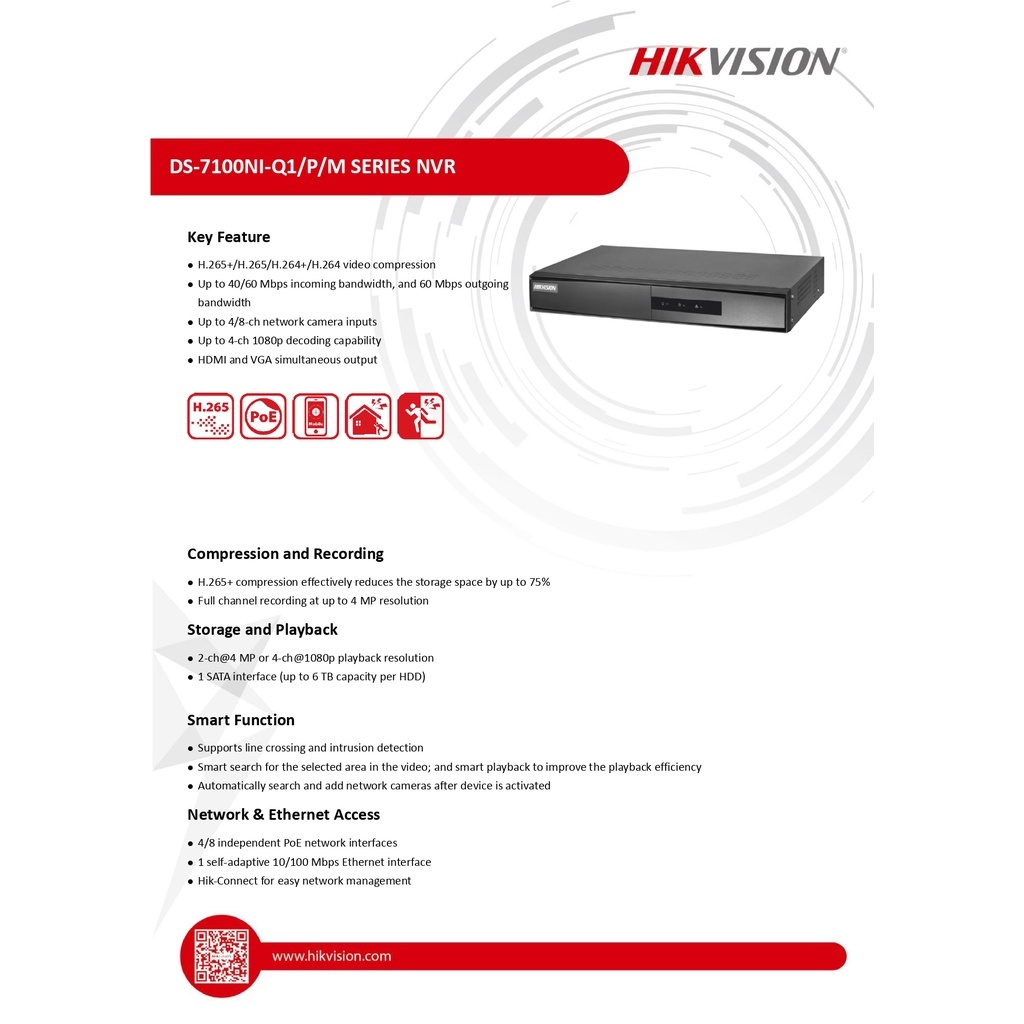Hikvision เครื่องบันทึกกล้องวงจรปิด 8-ch Mini 1U 8 PoE NVR รุ่น DS-7108NI-Q1/8P/M