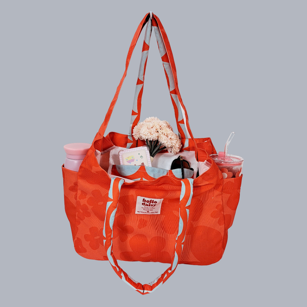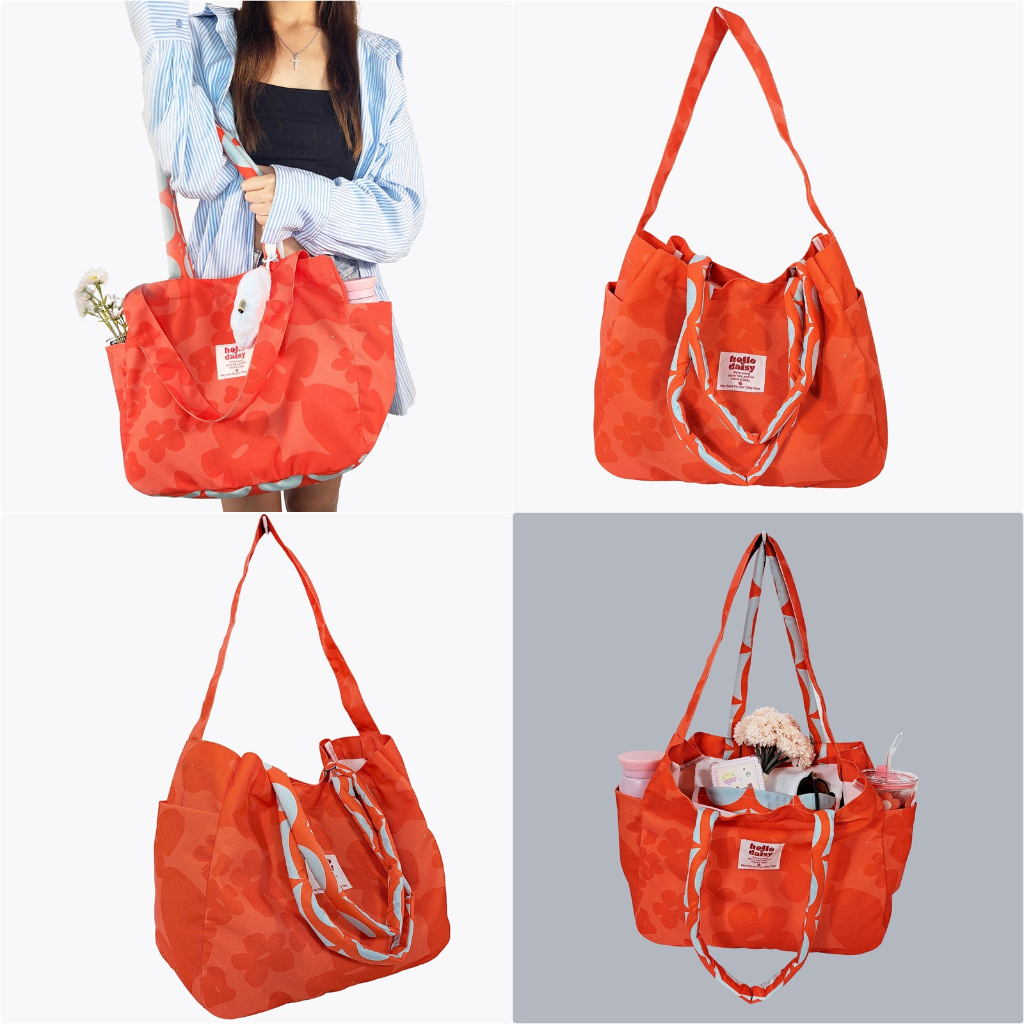 [พร้อมส่ง] Hello Daisy แบรนด์ไทย- Weekend bag สีแดง กระเป๋าข้าง 2 ช่องใส่กระบอกน้ำ