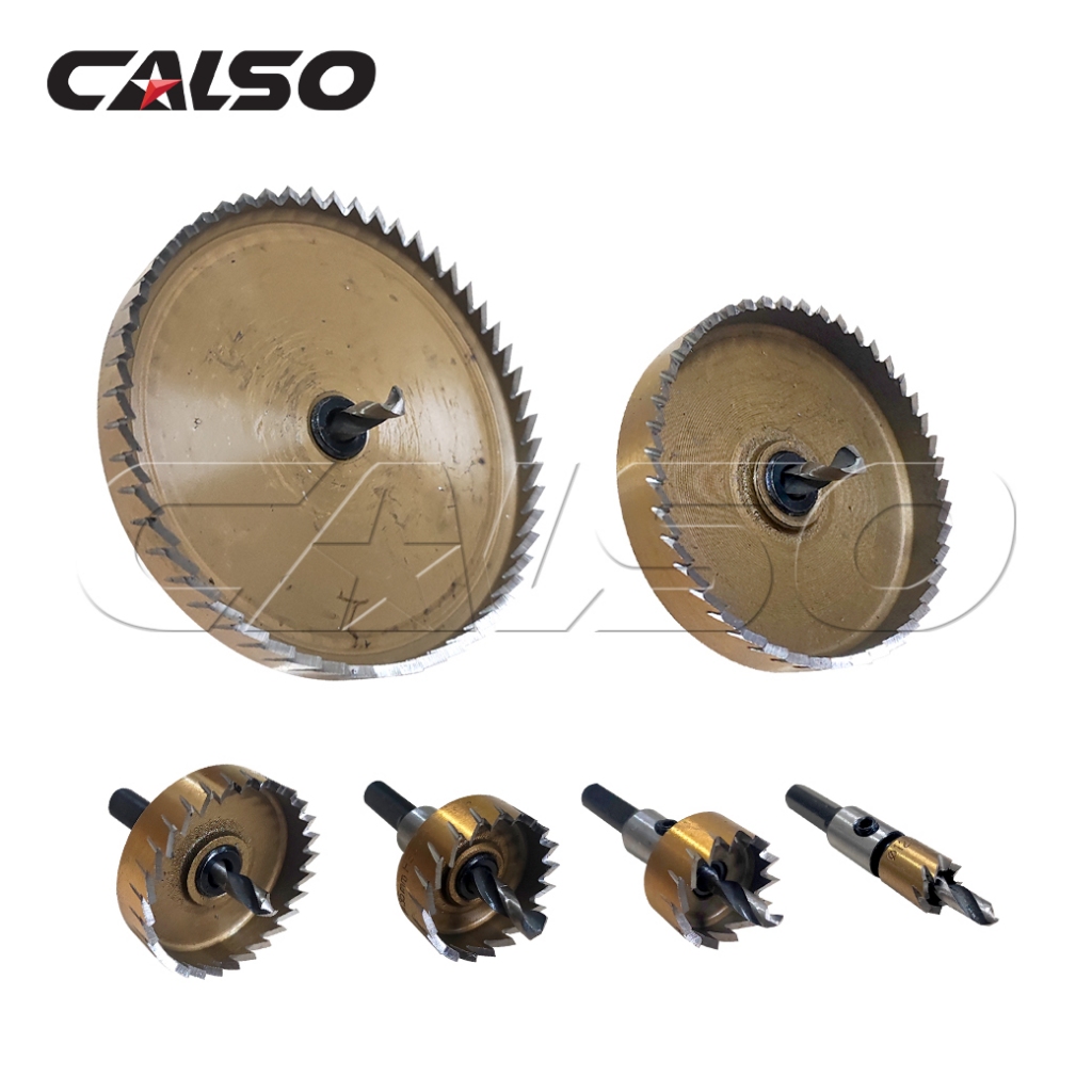 CALSO โฮลซอเจาะเหล็ก HSS [ สีทอง ] ดอกโฮลซอ ดอกสว่าน ดอกเจาะเหล็ก เจาะสแตนเลส เจาะอลูมิเนียม HSS Hole Saw ขนาด 12-100MM.