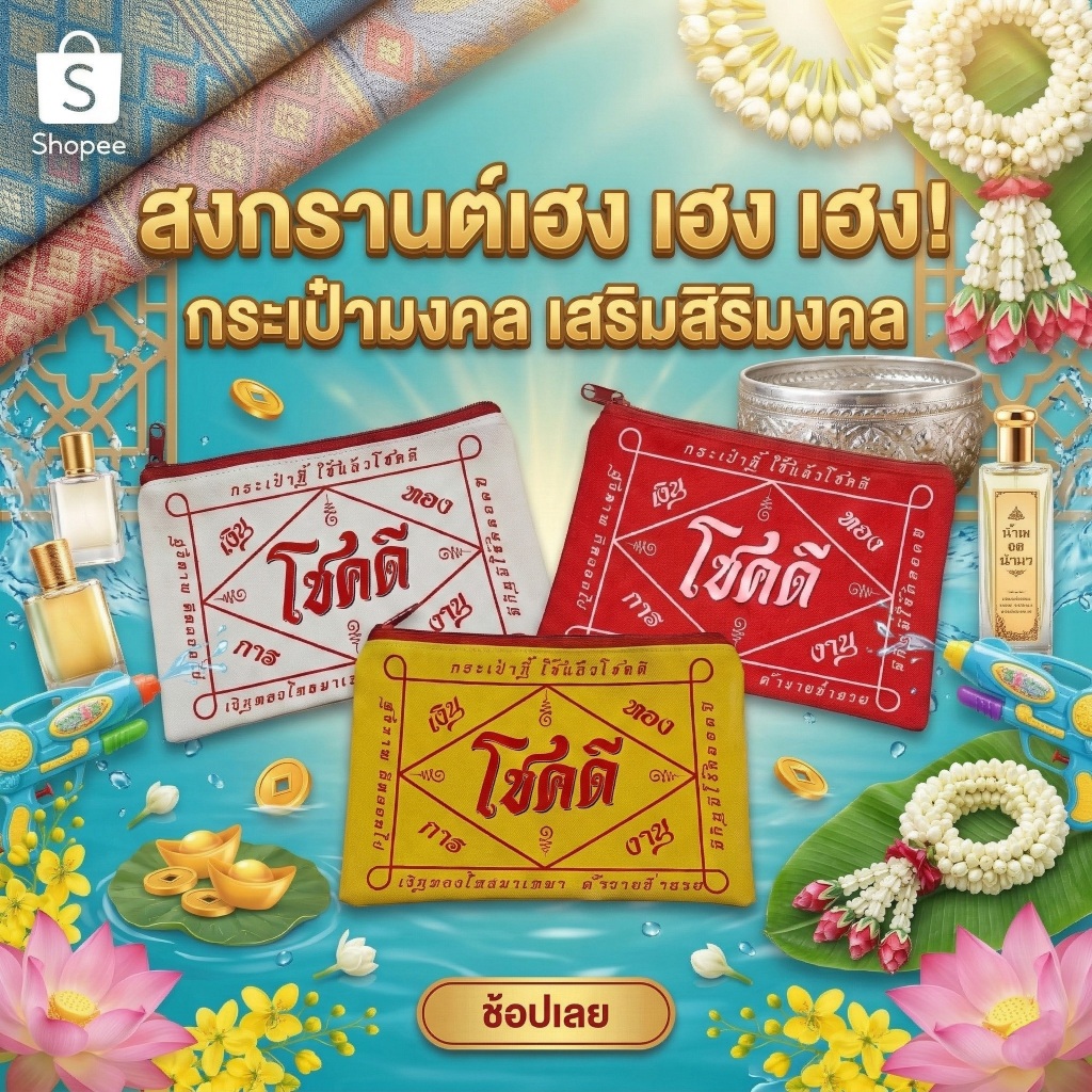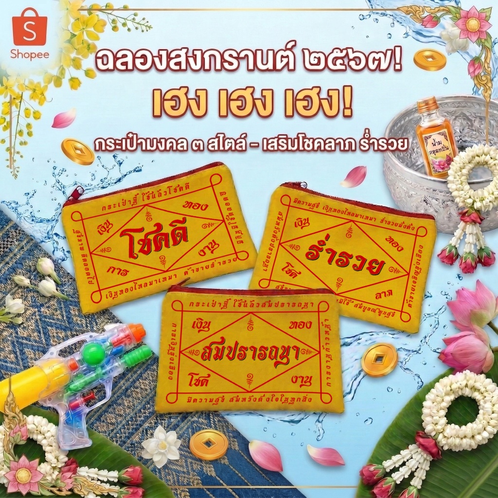 กระเป๋าซิปผ้ายันต์ มหาเฮง ของแจก ของชำร่วย ของขวัญ (ขนาด 5x8 นิ้ว)