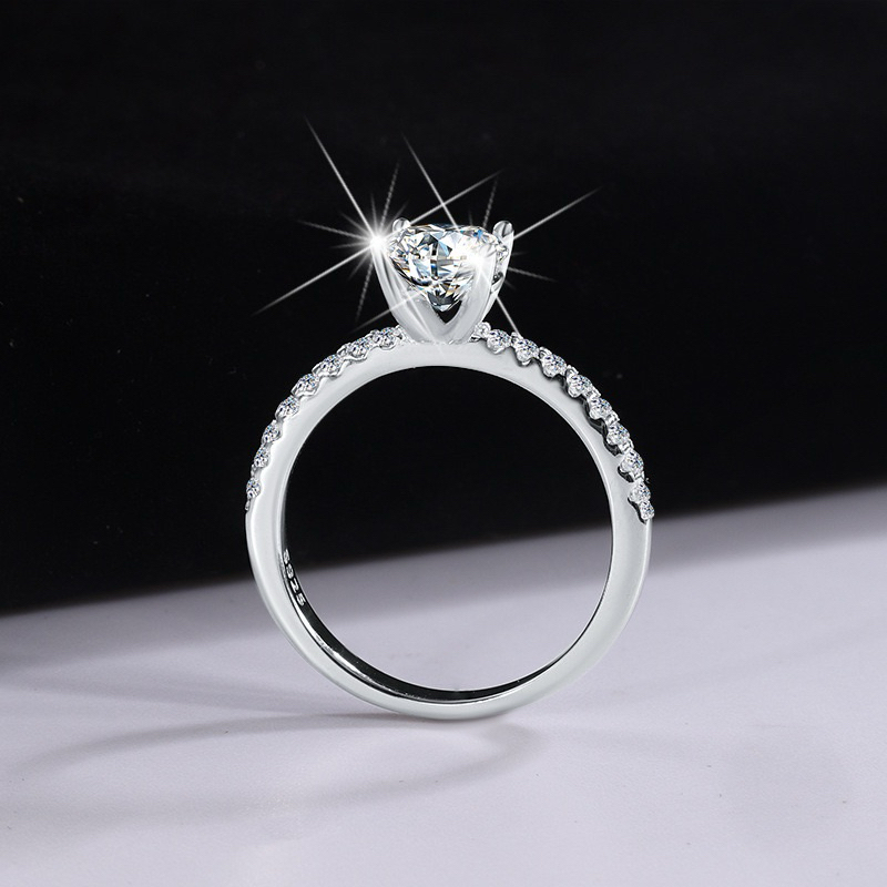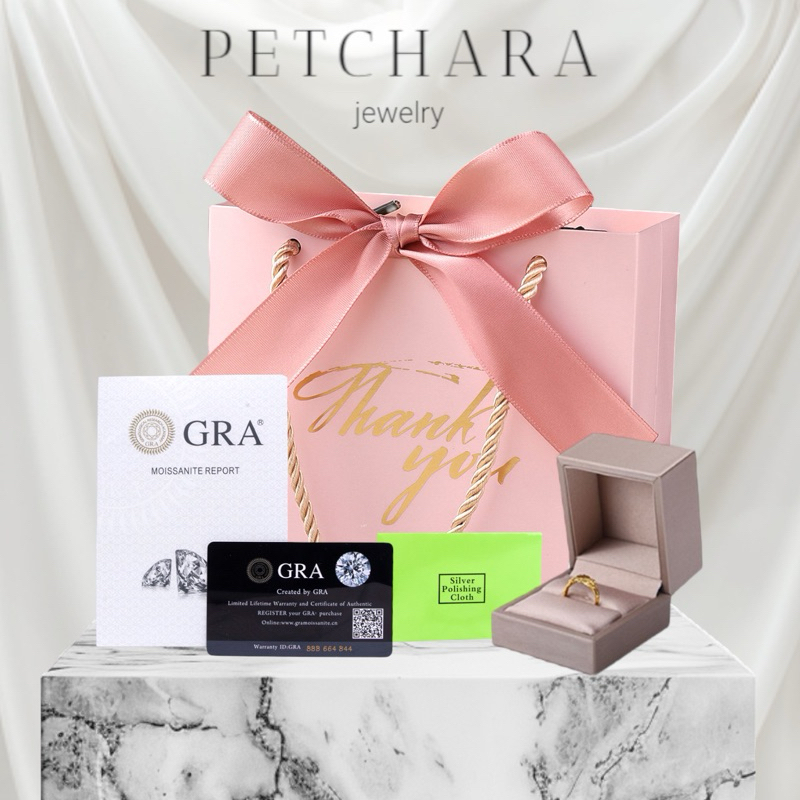 แหวนเพชรโมอีส 1 กะรัต ฝังสี่หนามเตย ชุบทองคำขาว พร้อมใบเซอร์