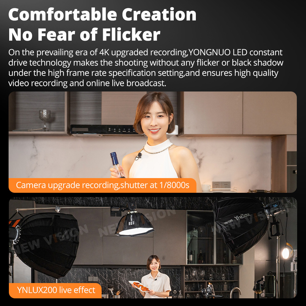 Yongnuo YNLUX200 200W 2700K-6500K มือถือ LED วิดีโอแสงการถ่ายภาพกลางแจ้ง Bowens Mount สตูดิโอโคมไฟเติมแสง