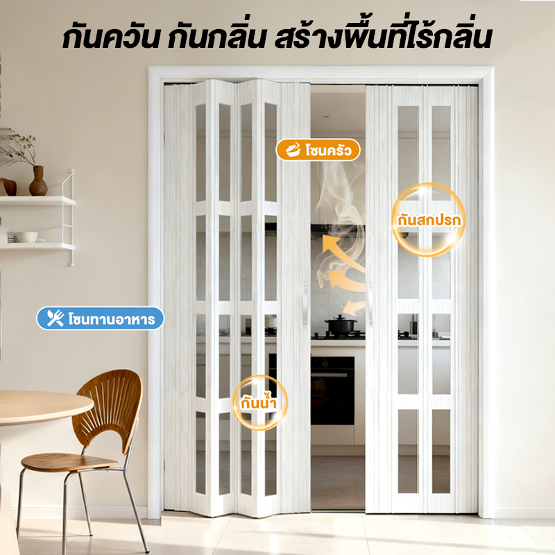 ฉากกั้นห้อง ประตูพับPVC ฉากกั้นแอร์ 80/90/120CM สำหรับ ห้องครัว ห้องนอน ห้องน้ำ ง่ายที่ทำความสะอาด