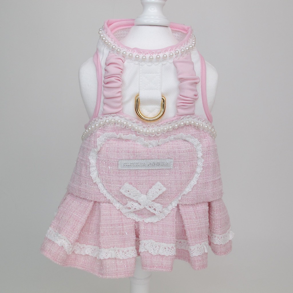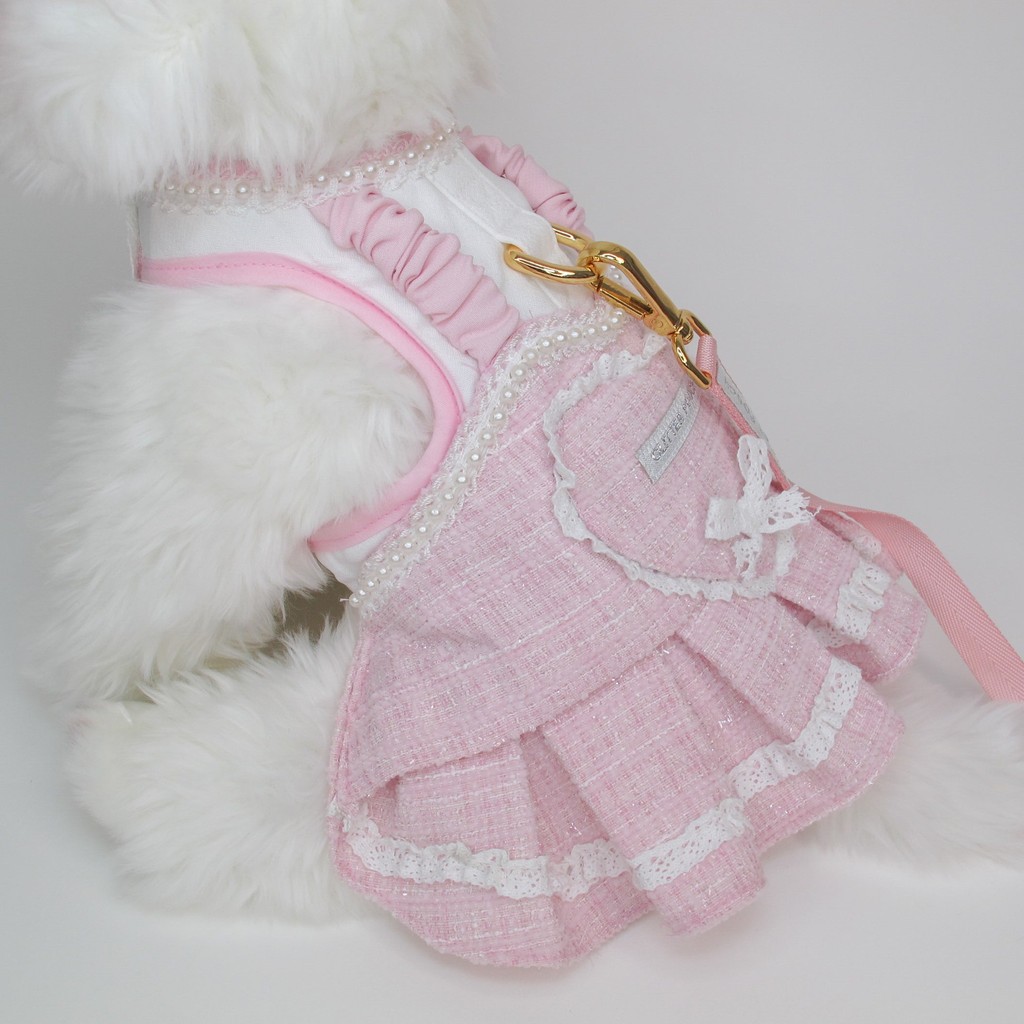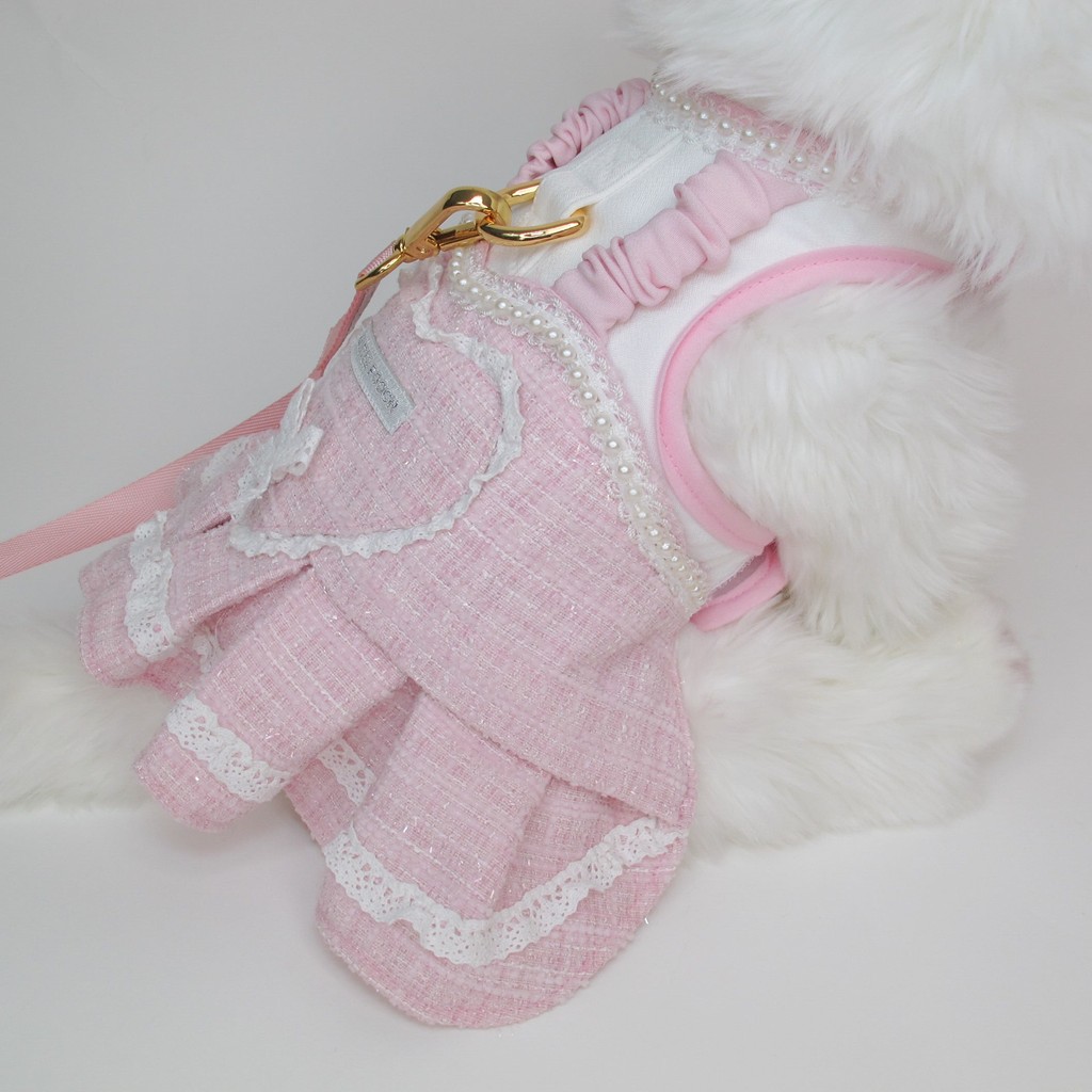 Glitter Pooch Harness ชุดรัดอก สายจูง เสื้อผ้า สุนัข, หมา, แมว, สัตว์เลี้ยง พร้อม สายจูง รุ่น Lovely Amour Pink