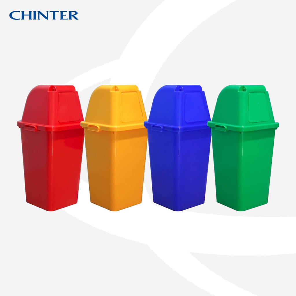 CHINTER F11ถังขยะพลาสติก60ลิตร แบบฝาผลัก มีสีเหลือง,น้ำเงิน,แดง,เขียว,ใสขุ่น ไม่สกรีน/สกรีน