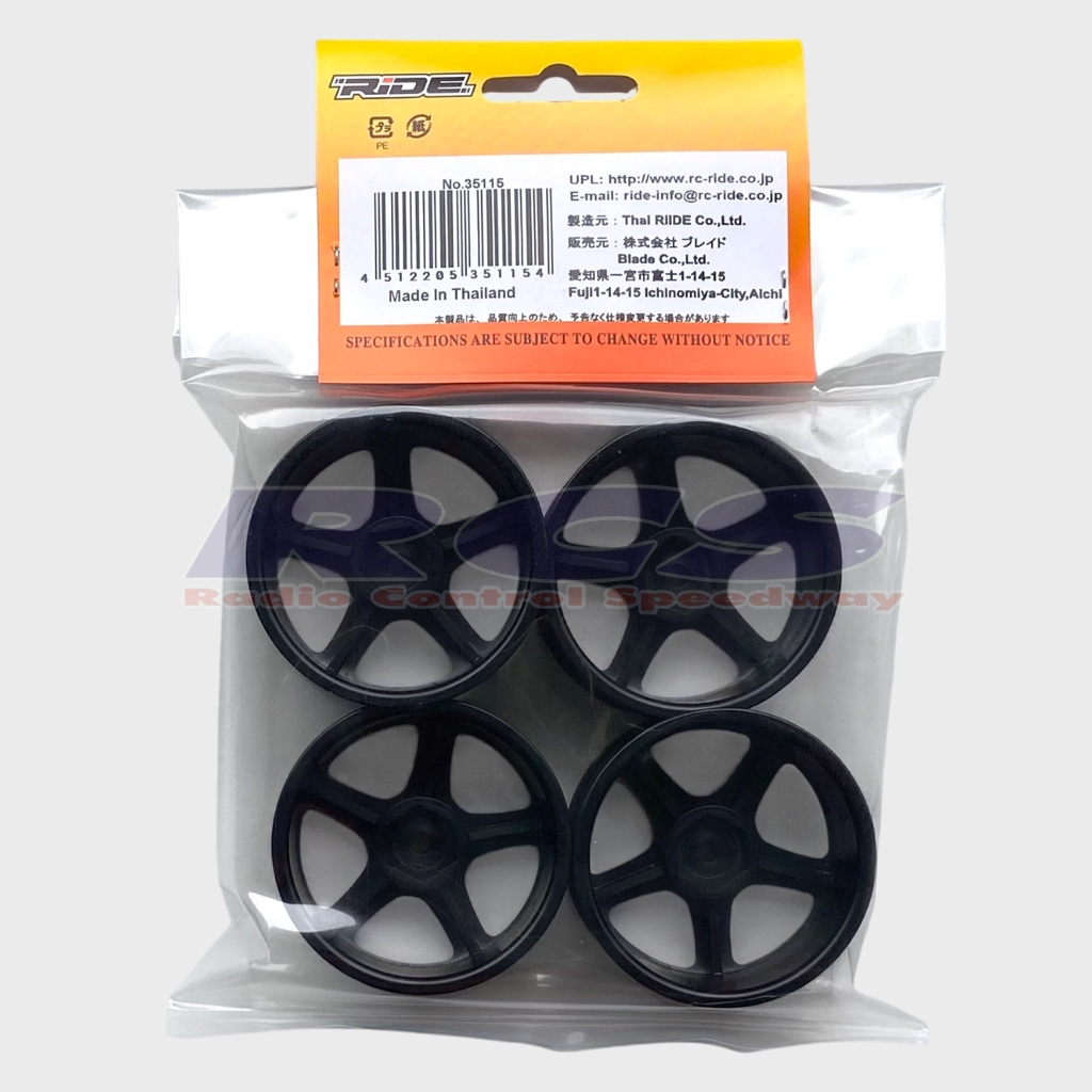RJ-RIDE 35115 1/10 Touring Car 24mm 5 Spoke Wheel (BLACK) 4pcs.