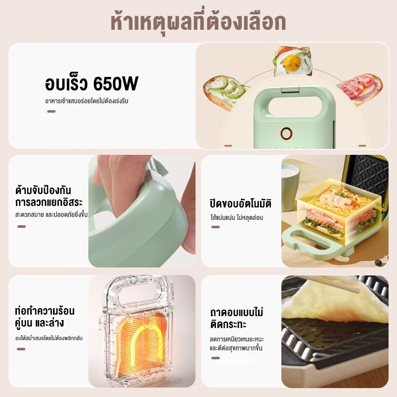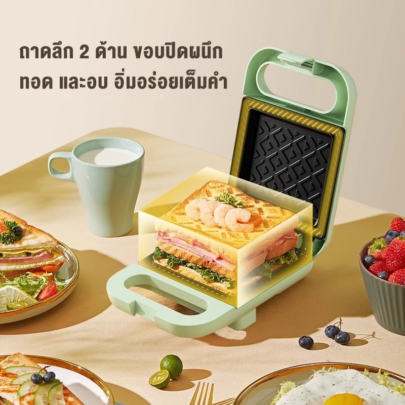 Precook เครื่องทำแซนวิช รุ่น 3011 เครื่องทำขนมไฟฟ้า ที่ปิ้งขนมปัง เตาปิ้งแซนวิช ทำความร้อนสองด้าน พกพาสะดวก