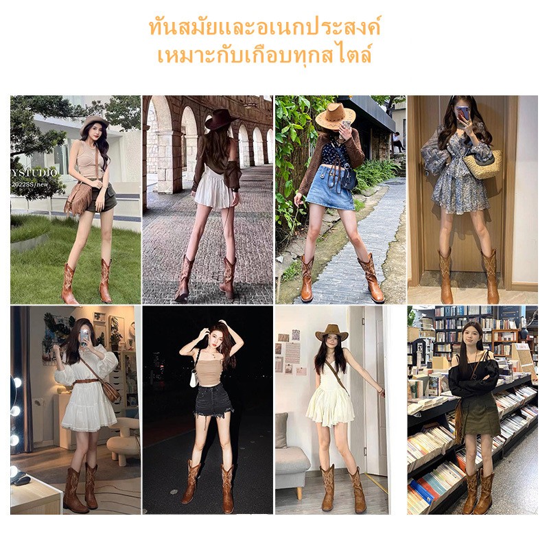 รองเท้าบูทคาวบอยตะวันตก สไตล์เรียบง่าย ตั้งแคมป์กลางแจ้ง ออกเดท คอนเสิร์ต เทศกาลดนตรี การเดินทาง