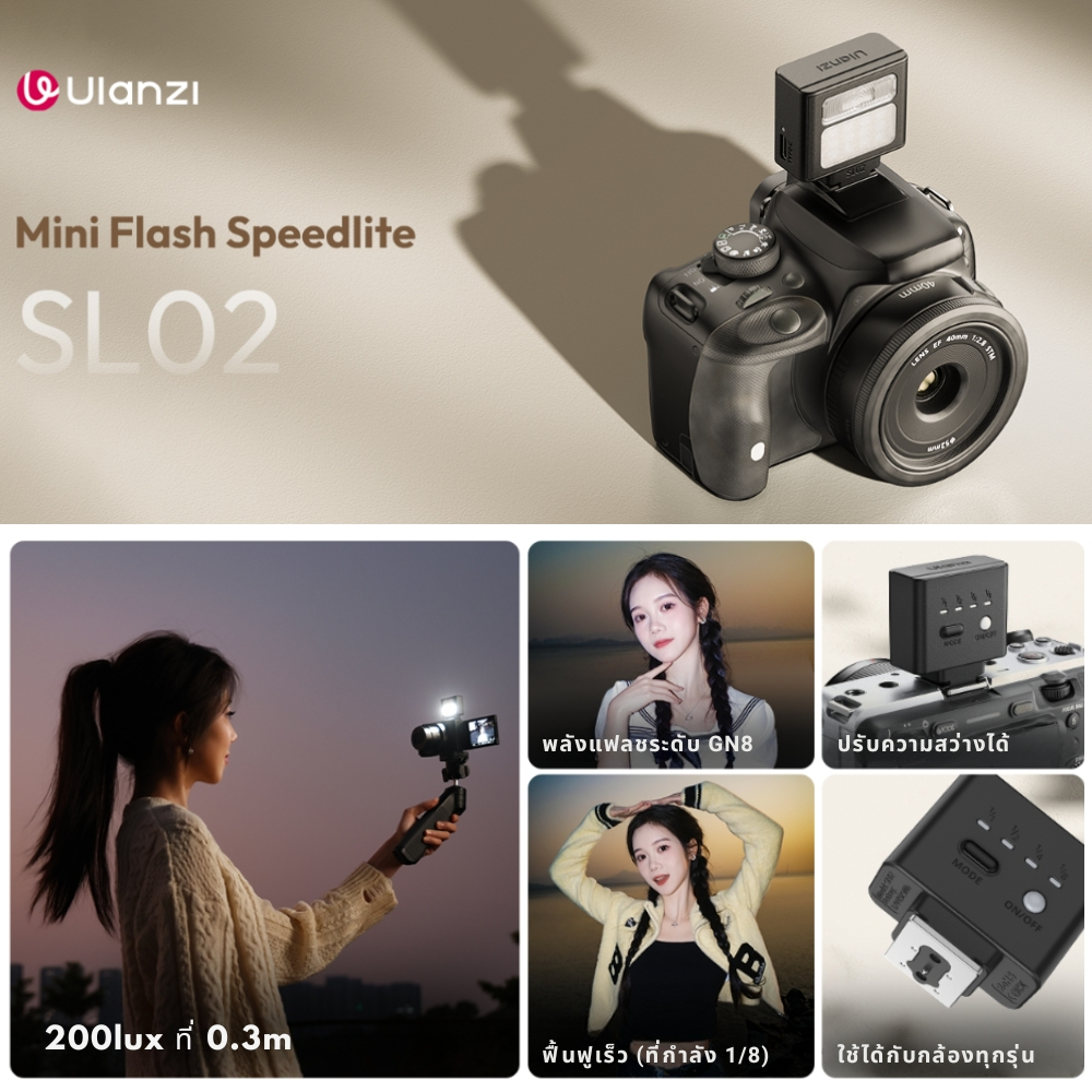 Ulanzi SL02 แฟลชกล้อง พร้อมไฟ LED แฟลชถ่ายภาพ แบบ Universal Hot Shoe สำหรับ Sony Nikon Mini Flash