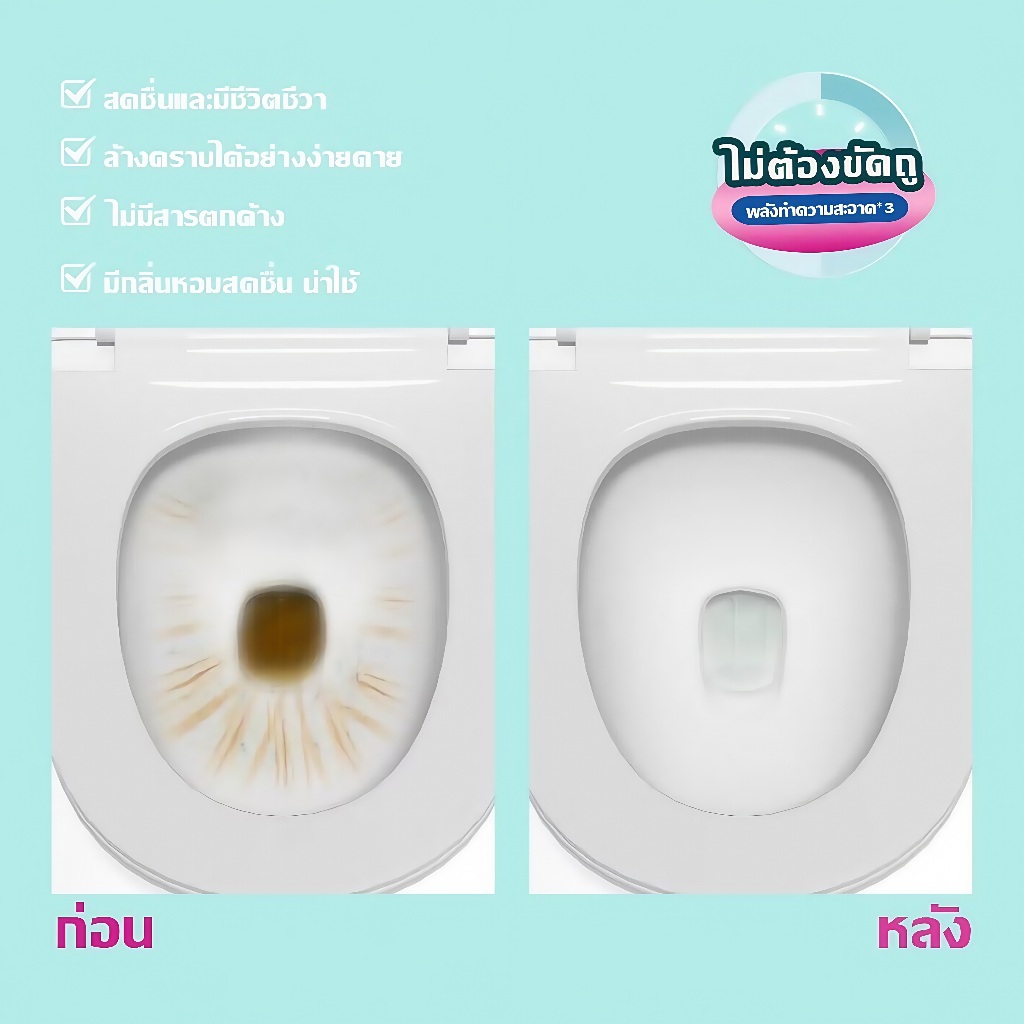 น้ำยาทำความสะอาดโถสุขภัณฑ์ ไม่ต้องขัด ฆ่าเชื้อ 99% ขจัดคราบ ดับกลิ่น น้ำยาทำความสะอาดห้องน้ำ
