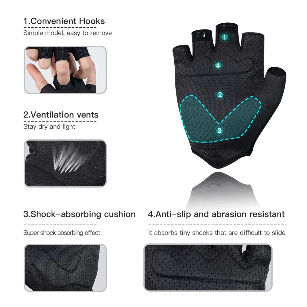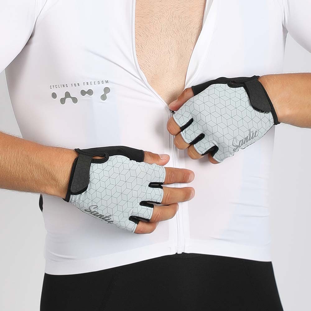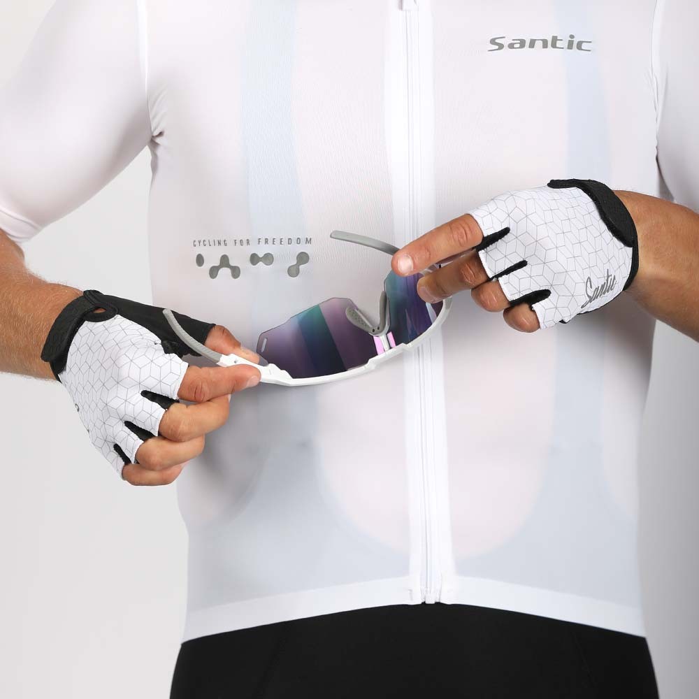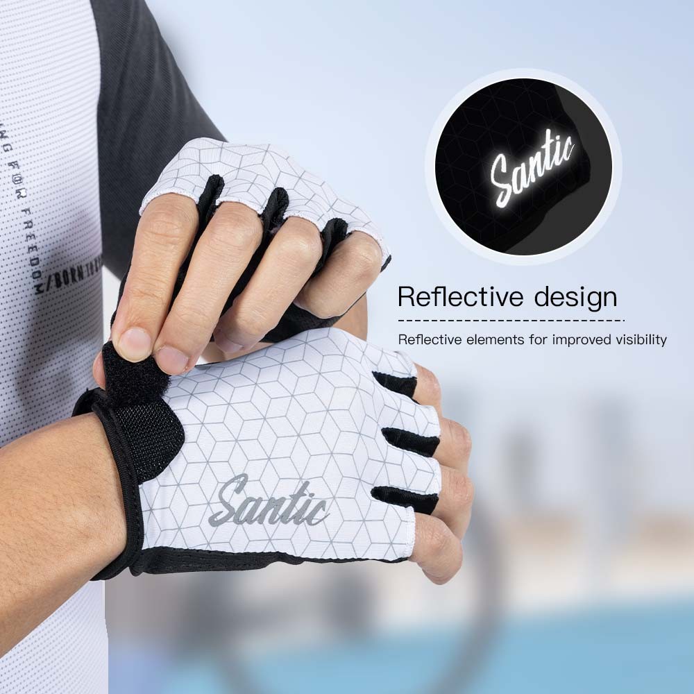 Santic ถุงมือปั่นจักรยาน ทนทาน สะท้อนแสง ดูดซับแรงกระแทก ออกแบบครึ่งนิ้วสำหรับถนนและMTB พร้อมระบบระบายอากาศ TZ25P218