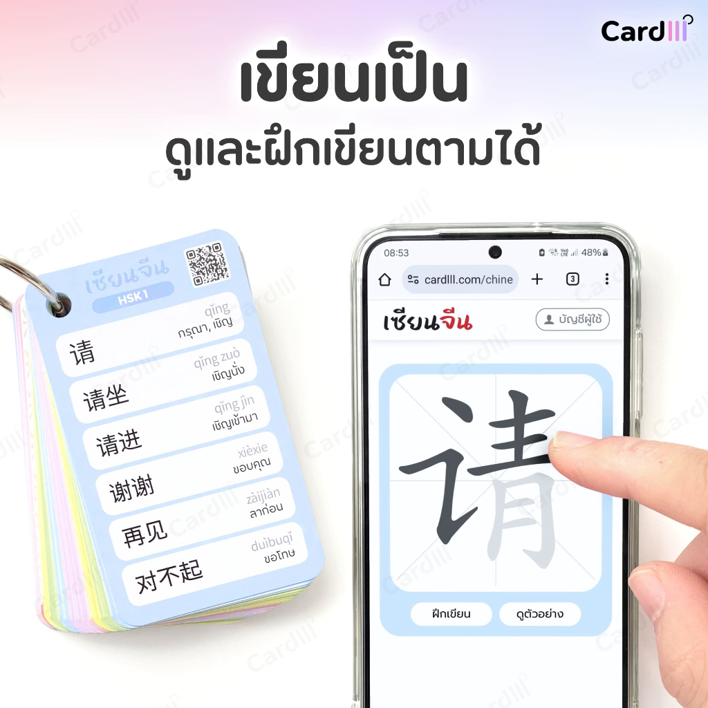 การ์ดคำศัพท์ HSK 1-6 ระบบใหม่ แฟลชการ์ด เซียนจีน คำศัพท์ภาษาจีน HSK3.0 ฟังเสียง ฝึกเขียนจีน ภาษาจีน