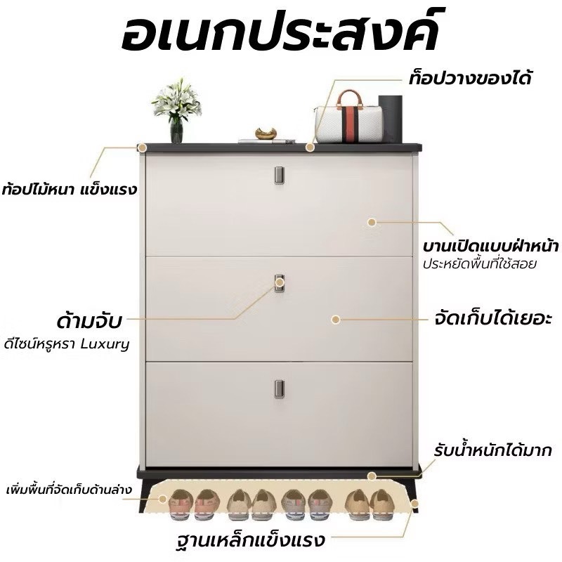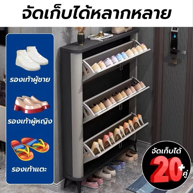 ตู้รองเท้าบานพับเปิดหน้า ชั้นวางรองเท้า ประหยัดพืนที่ หยิบจับสะดวก ดีไซน์โมเดิร์น แข็งแรง