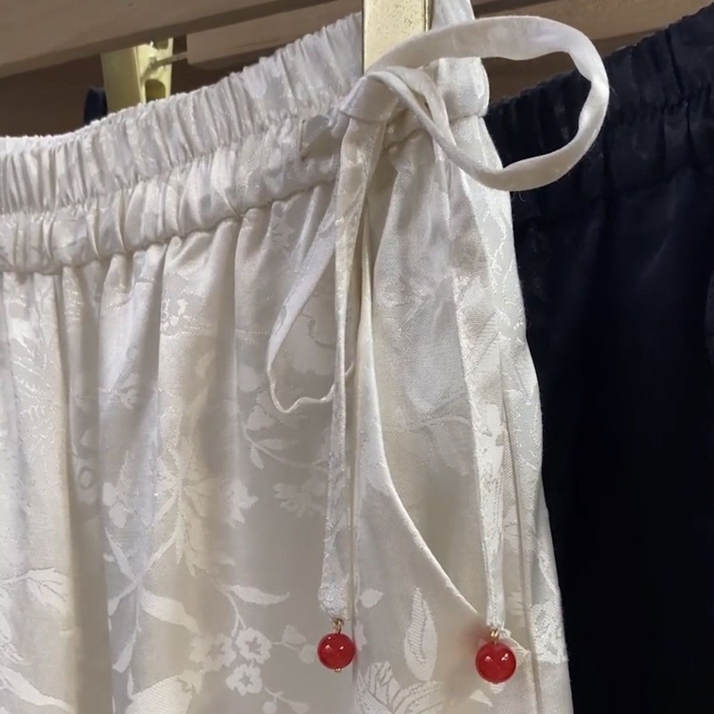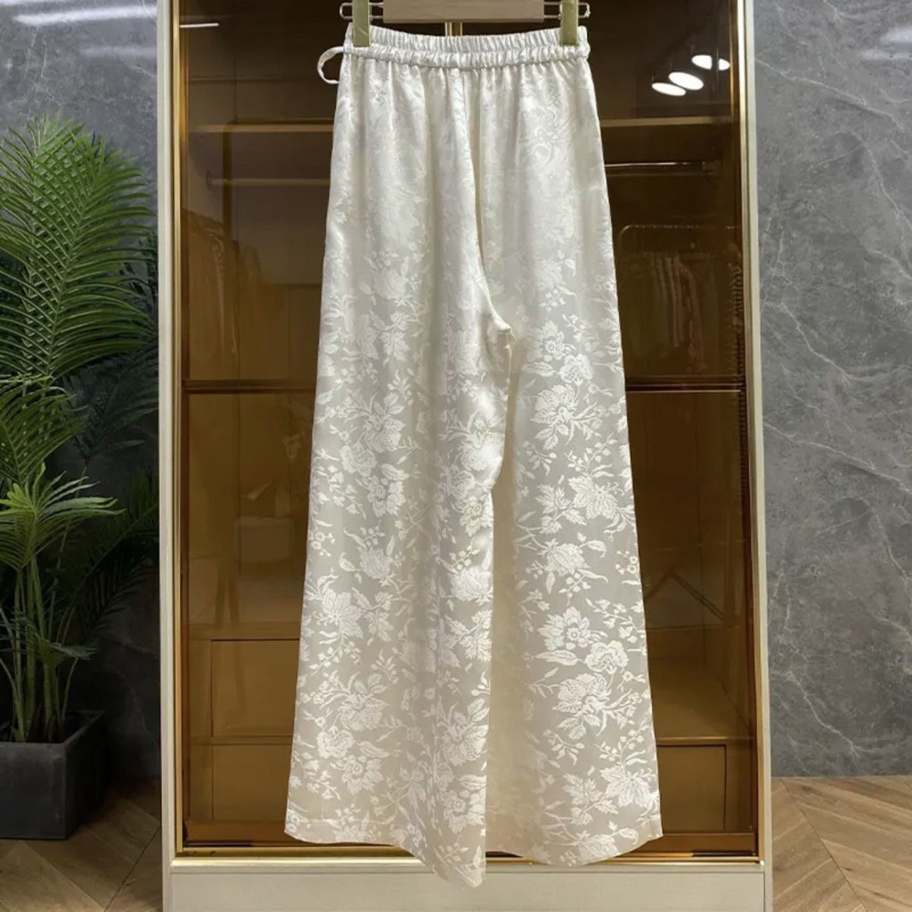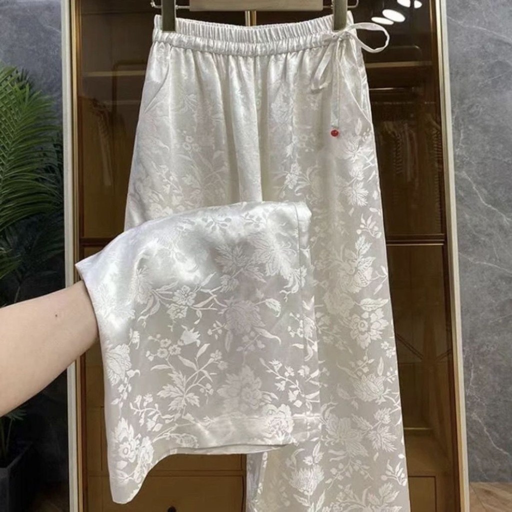 ขายร้อน! F & X กางเกงบุคลิกภาพ jacquard สไตล์จีนใหม่สไตล์จีน2024เอวสูงผูกเชือกกางเกงกว้างยางยืดผู้หญิงกางเกงลำลองทรงตรงทรงหลวมเดรปแคบ