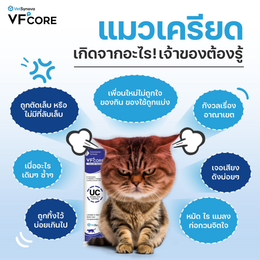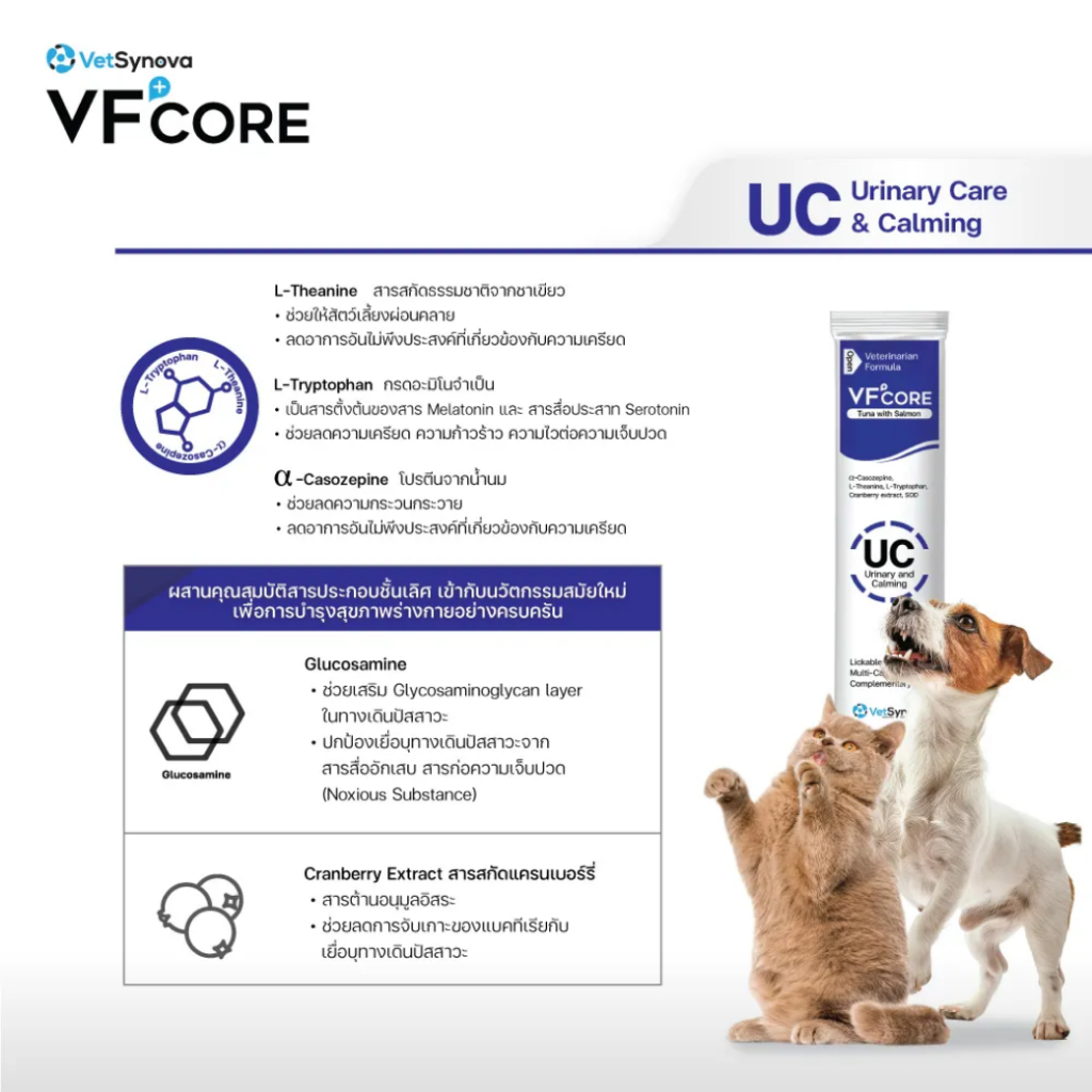 [1 ซอง] VF+core UC แมวเลีย สุนัขเลีย สูตรลดความเครียด และรักษาระบบทางเดินปัสสาวะ สำหรับสุนัขและแมว