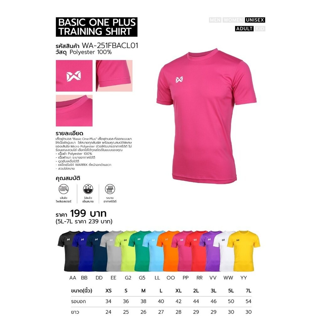 WARRIX เสื้อฟุตบอล เสื้อกีฬา เสื้อคอกลมสีล้วน วอริกซ์ รุ่น Basic One Plus WA-251FBACL01 สีดำ/กรมท่า