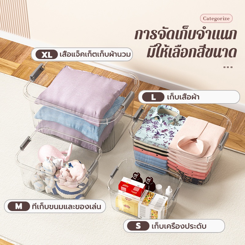 GREENIKA กล่องเก็บของพลาสติกใส มีหูหิ้วมีฝาปิด เอนกประสงค์ กันน้ำและกันฝุ่น