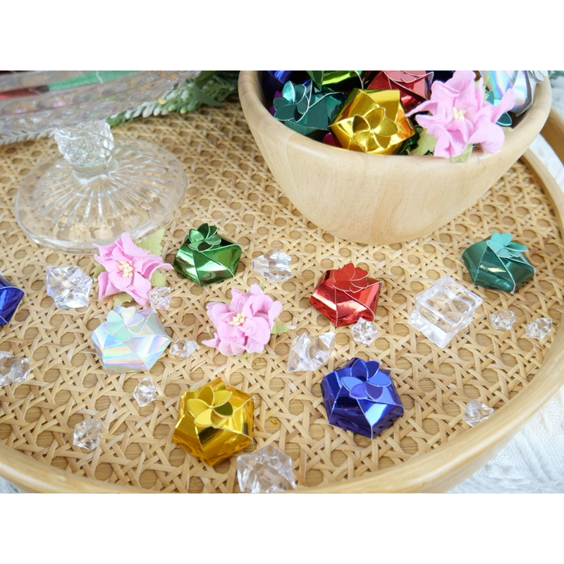 ชุดพับเหรียญโปรยทานดอกไม้เกลียว กล่องใส่เหรียญโปรยทาน กระดาษพับเหรียญโปรยทาน เหรียญโปรยทาน และรวมกล่องงานพิมพ์