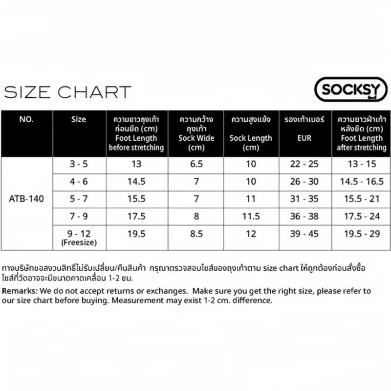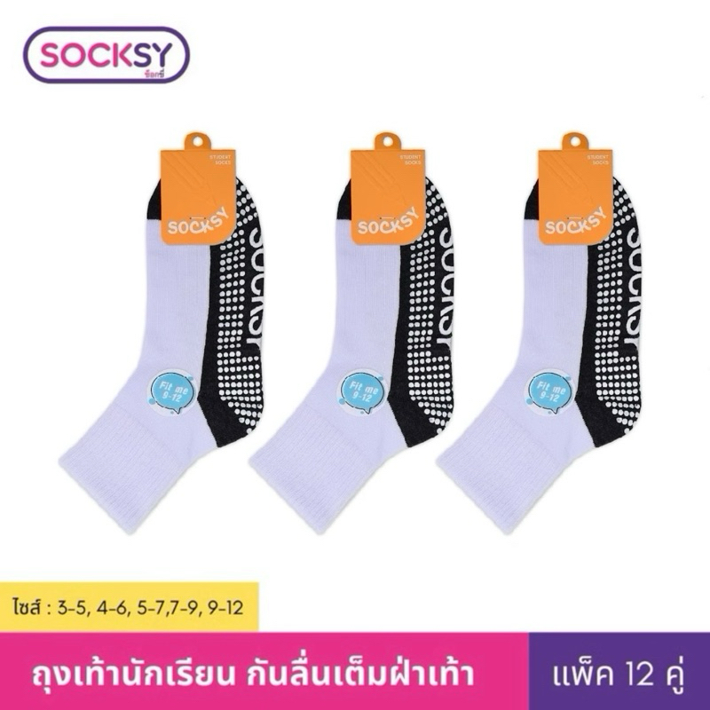 Socksy ถุงเท้านักเรียน ขาวพื้นเทากันลื่น มีปุ่มกันลื่นถึง 300 ปุ่ม(รุ่นBN140)