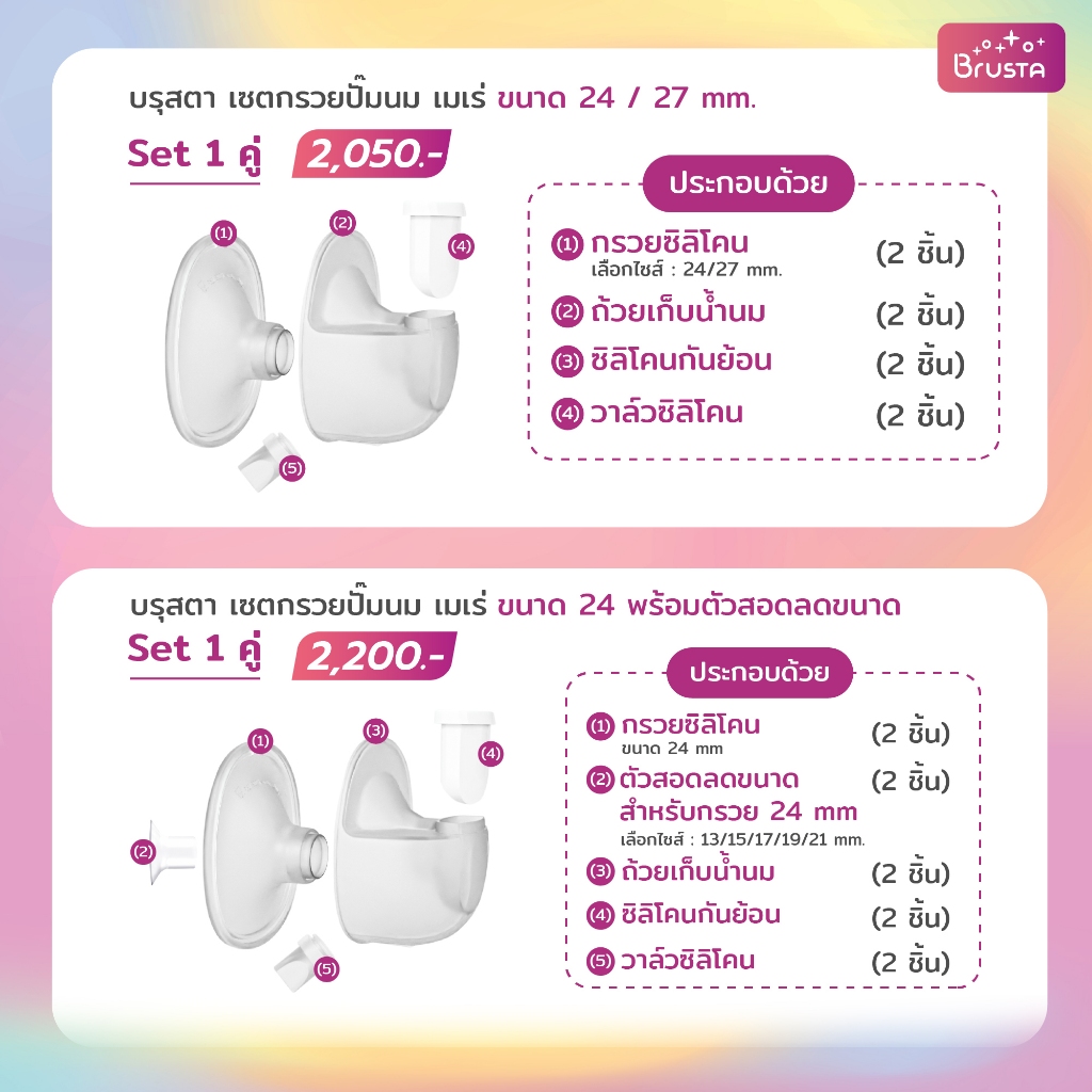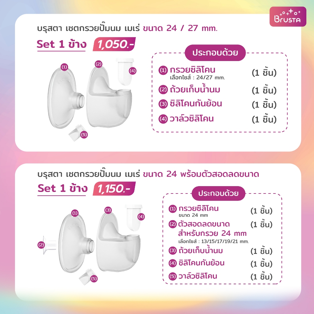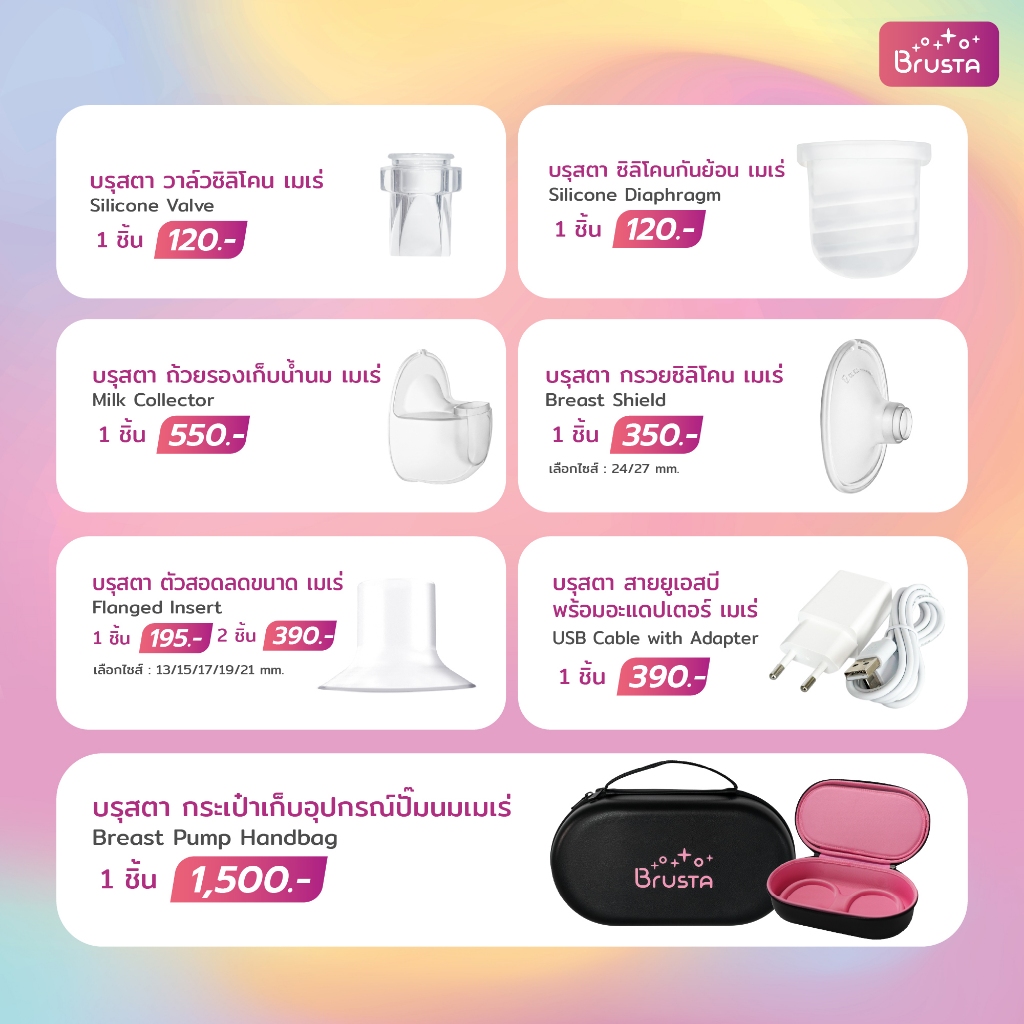 Brusta อะไหล่เครื่องปั๊มนม Mere | วาล์ว / ซิลิโคนกันย้อน / กรวย / ถ้วยเก็บน้ำนม | แยกชิ้น