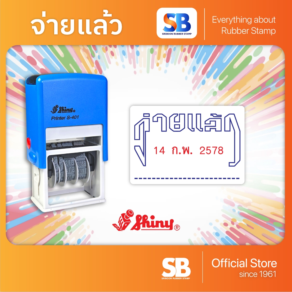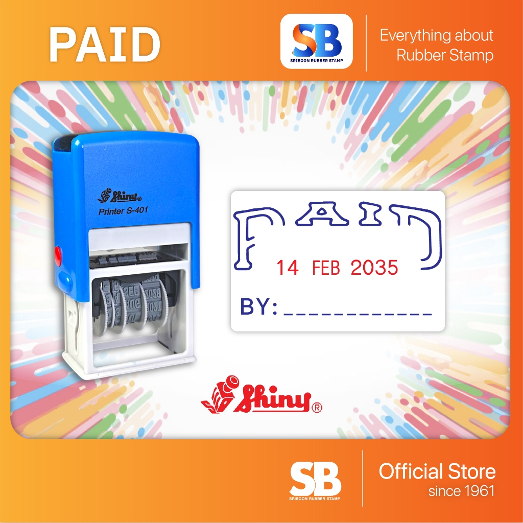 ตรายางวันที่หมึกในตัว S-401 | 402 สำเร็จรูป | พ.ศ. 2568-2579 | ค.ศ. 2025-2036 (จ่ายแล้ว, รับเเล้ว, PAID, RECEIVED)