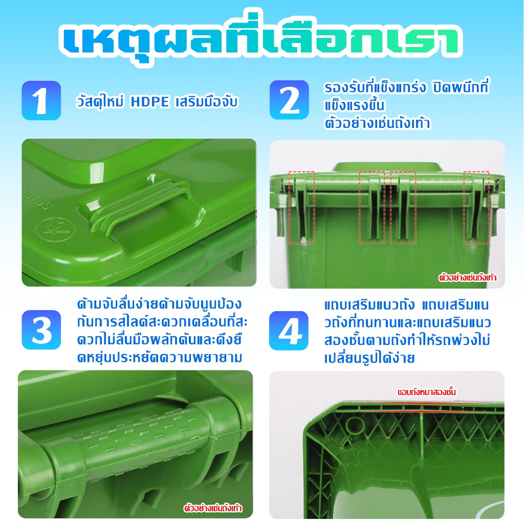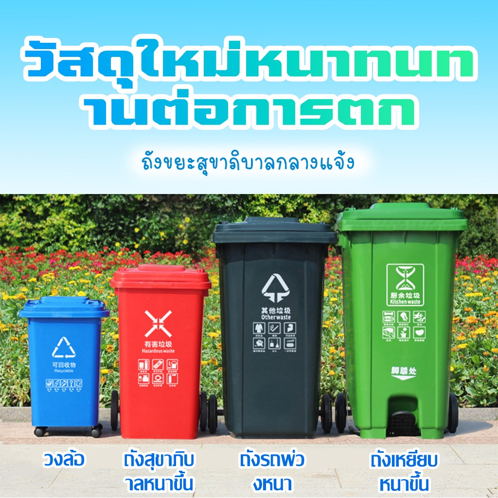 PERDKPAPA 100L/120L/240L ถังขยะใหญ่ ที่แยกขยะ ถังขยะพลาสติก ถังบรรจุขยะ ถังขยะ ถังแยกประเภทขย ถังขยะพลาสติกท นทานสวยงาม