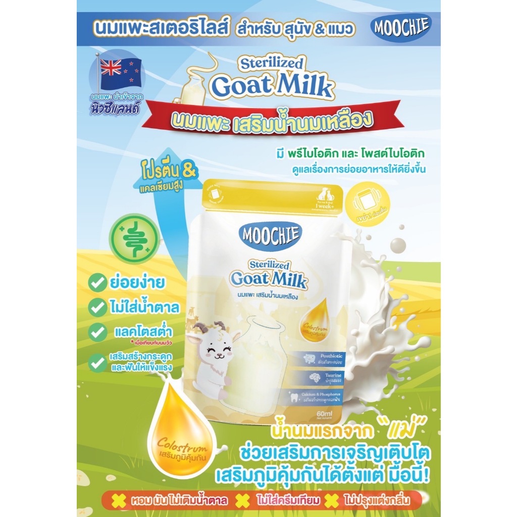 (6ซอง/12ซอง) Moochie Goat MIlk with Colostrum นมแพะเสริมน้ำนมเหลืองมูชี่ 60ml