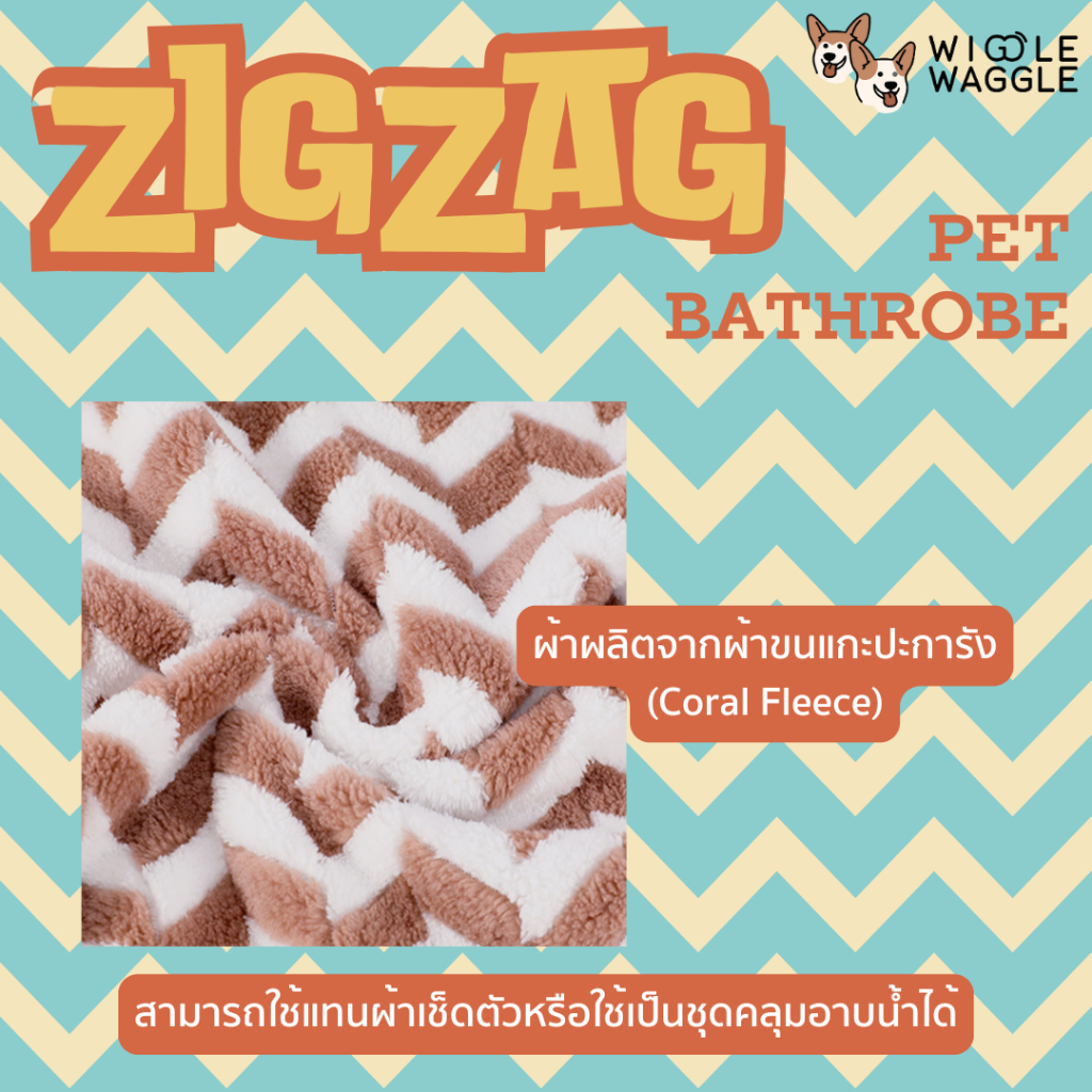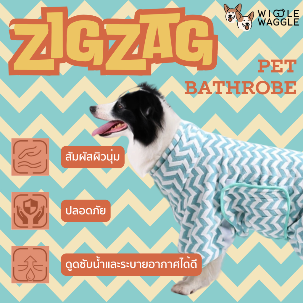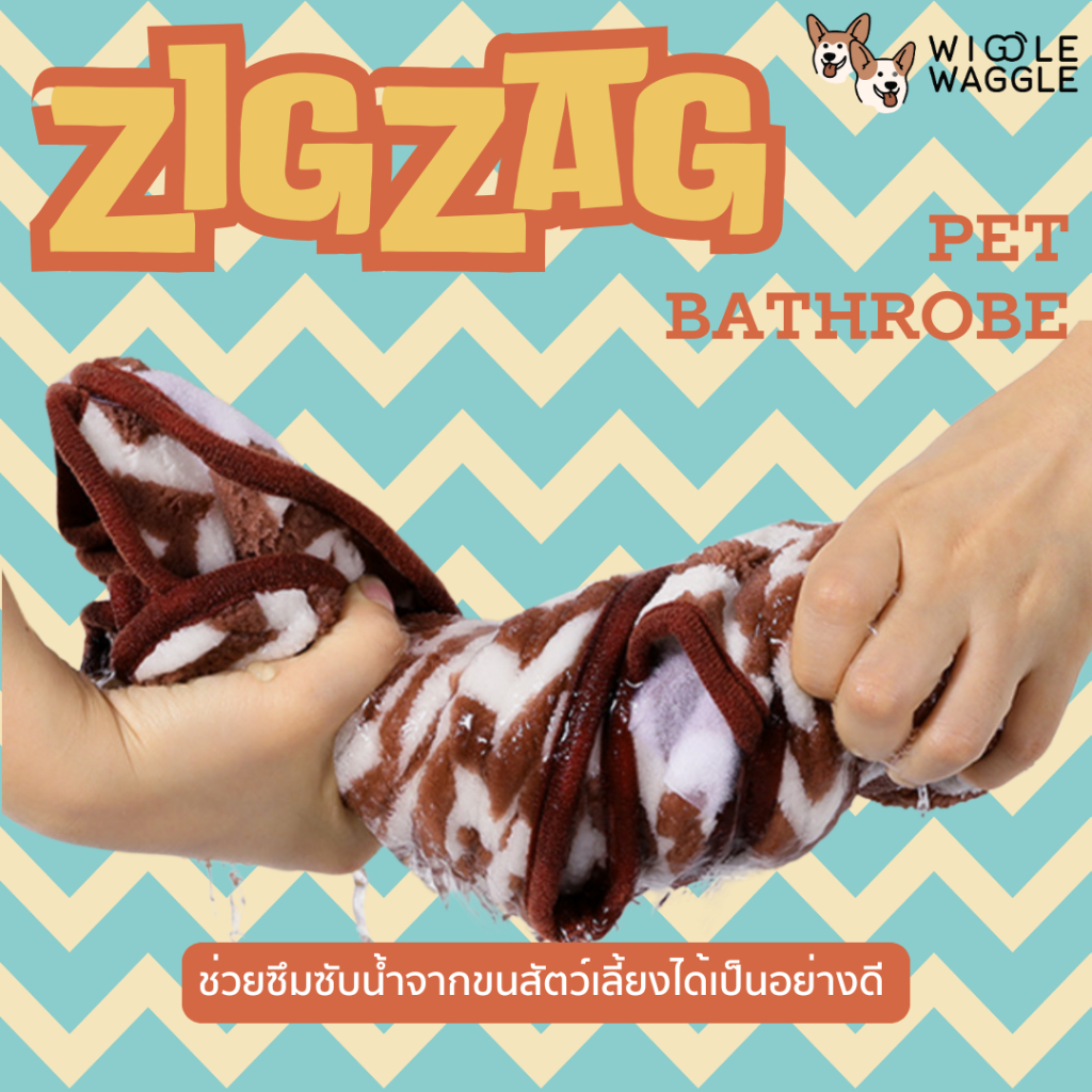 WIGGLE WAGGLE ZIGZAG Pet Bathrobe ชุดคลุมอาบน้ำ สำหรับสัตว์เลี้ยง ซับน้ำดี ขนแห้งไว สวมใส่ง่าย