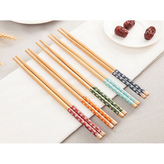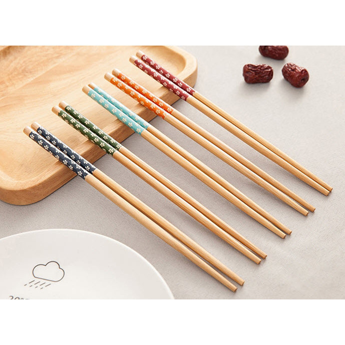 ตะเกียบไม้ ลายดอกไม้ คละสี S0345 คุณภาพดี ตะเกียบ กินข้าว ของใช้บนโต๊ะอาหาร