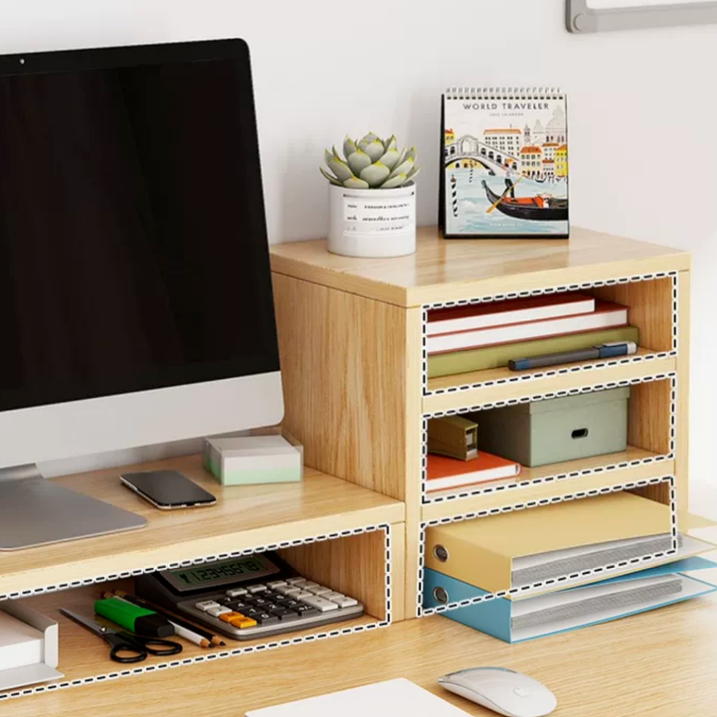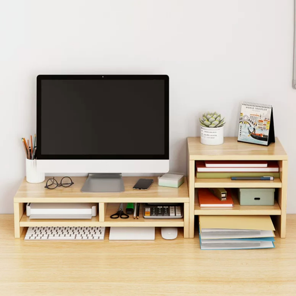 ชั้นวางจอคอม ขาตั้งจอคอม ชั้นวางคอม ชั้นวางบนโต๊ะทํางาน พร้อมที่เก็บคีย์บอร์ด Onesuper
