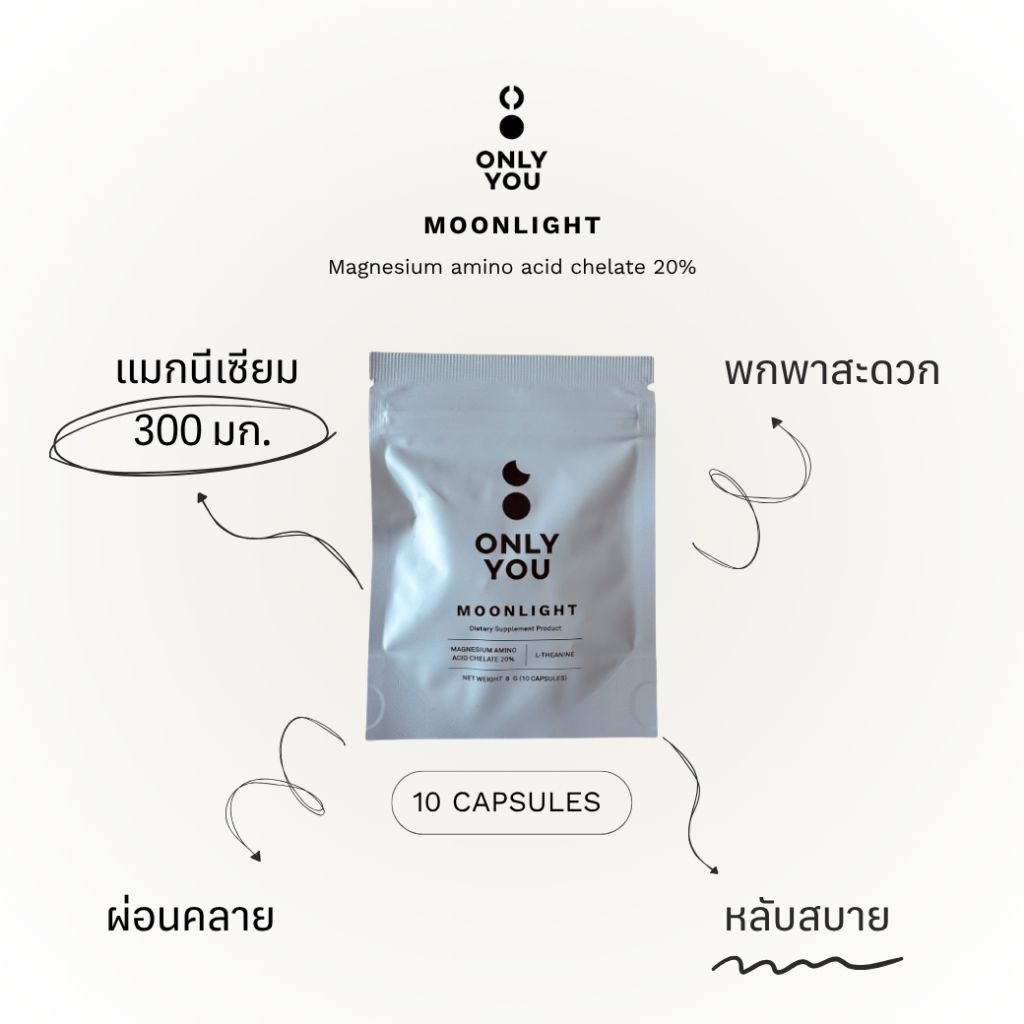 02_Only You TRAVEL PACK รุ่น Moonlight (10 แคปซูล) แมกนีเซียม Magnesium 300 มก L-Theanine และ Vit B
