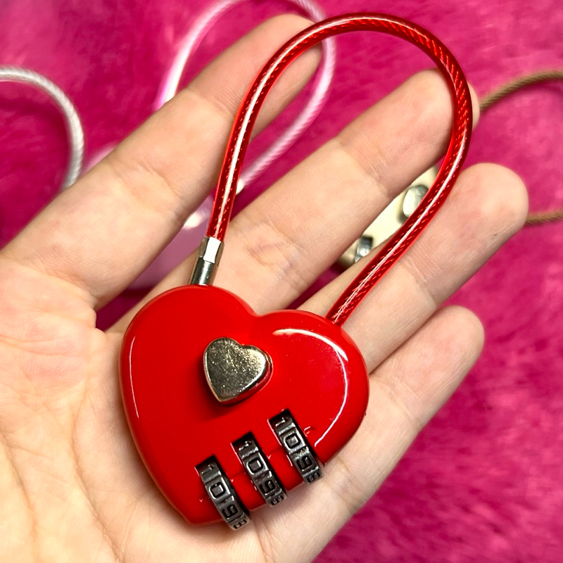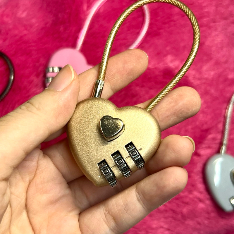 ตัวล็อคกระเป๋ารูปหัวใจ พวงกุญแจ แม่กุญแจ ตั้งรหัสได้จริง สีแดง ชมพู ดำ เงิน ทอง สำหรับตกแต่งกระเป๋า