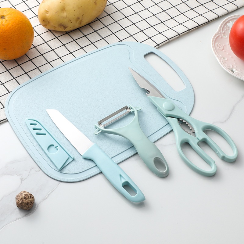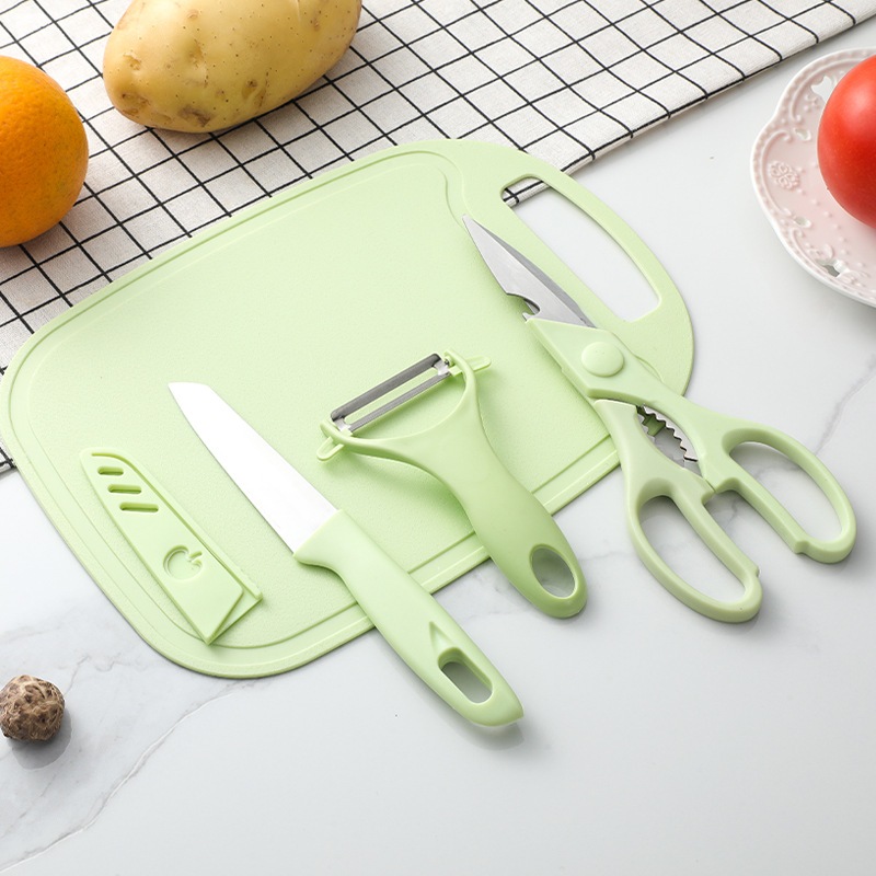 เขียงเกรดอาหาร มีดผลไม้ มีดปอกเปลือก กรรไกร ชุดสี่ชิ้น