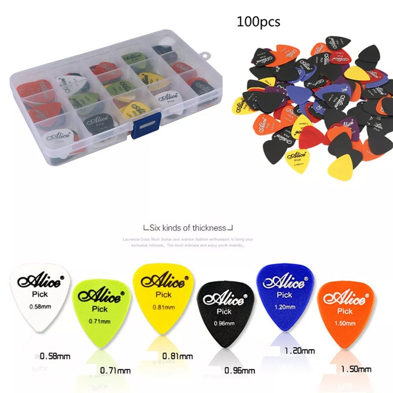 ปิ๊กกีตาร์Alice ชุด24/50/100ชิ้น ปิ๊กกีตาร์โปร่ง ปิ้กกีตาร์ไฟฟ้า Guitar pick แถมฟรีกล่องใส อย่างดี
