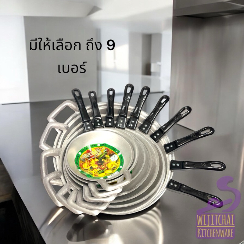 กระทะอะลูมิเนียม ด้ามดำ ตราจระเข้ กระทะอเนกประสงค์ เบอร์ 8 - 18