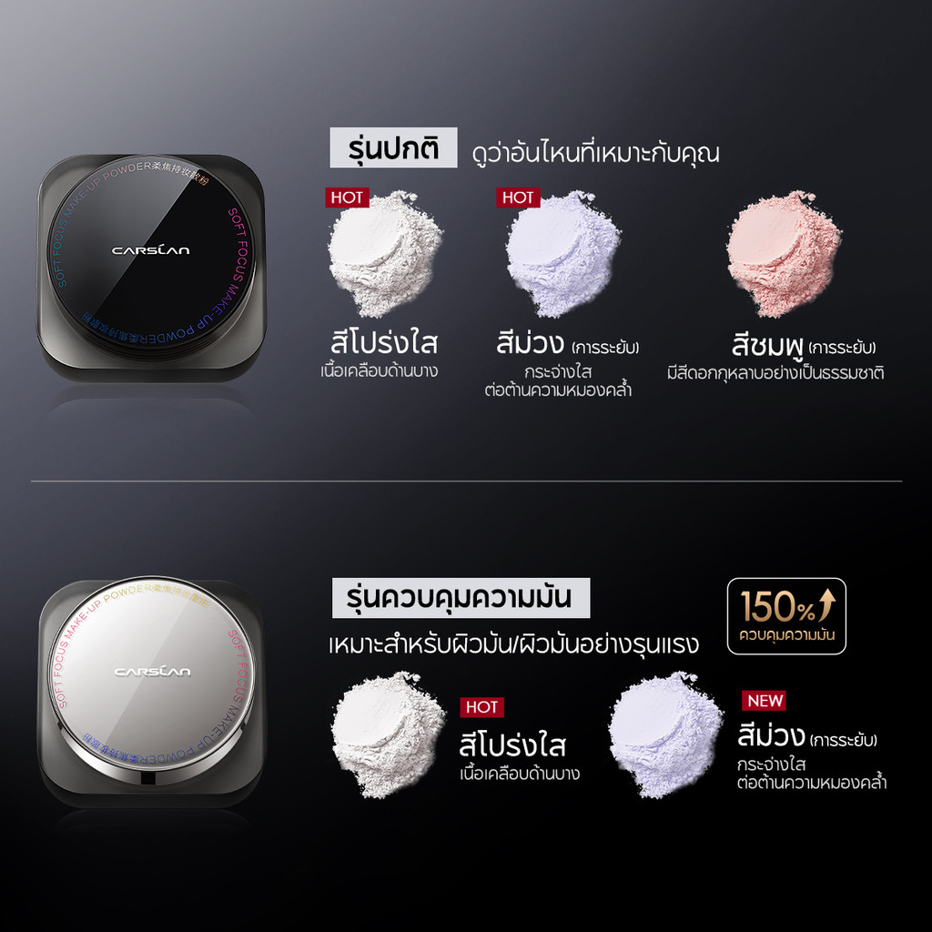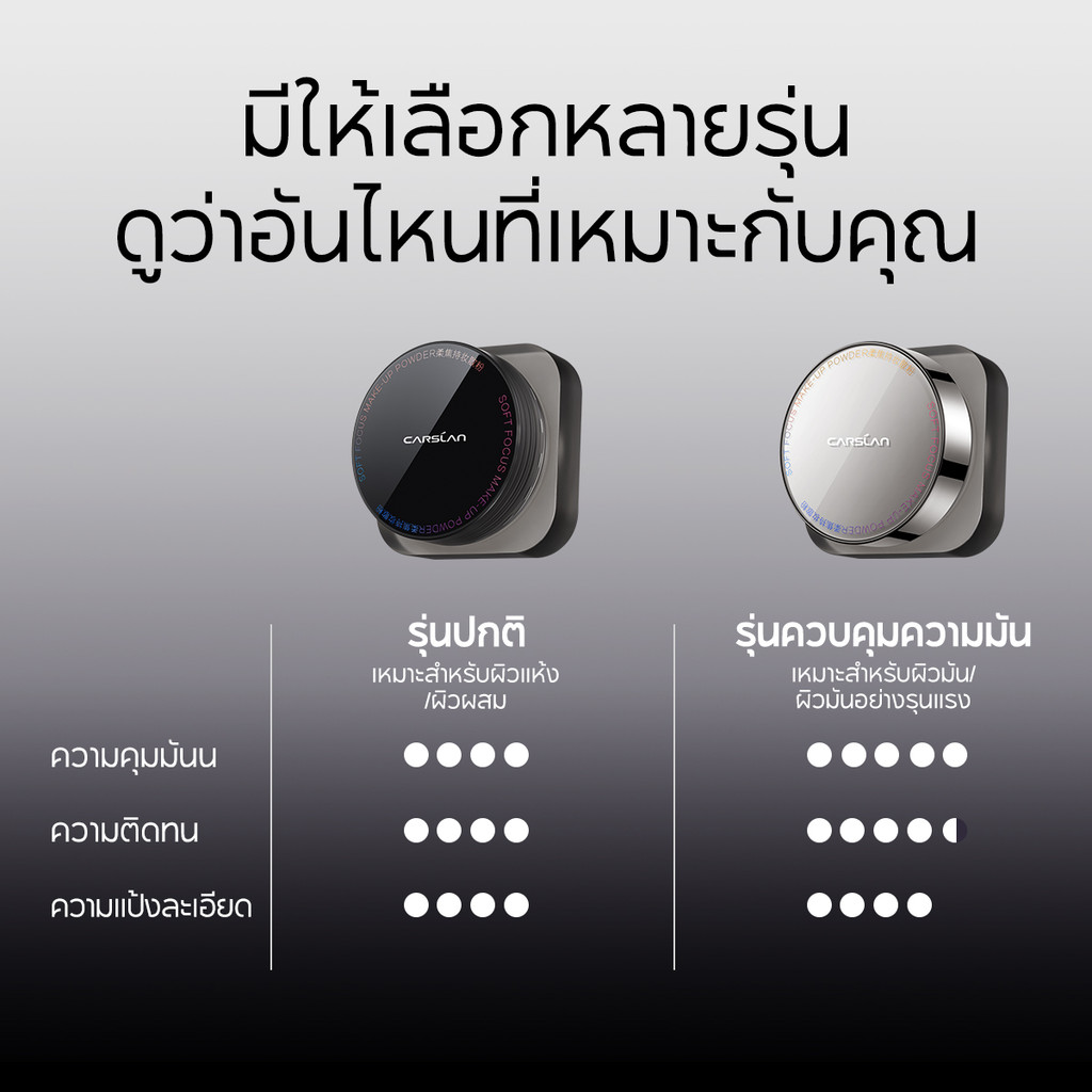 CARSLAN แป้งฝุ่นคุมมัน1.0 24H แป้งเนื้อแมทท์ ติดทนนาน ไม่หลุดง่าย ควบคุมความมันทั้งวัน แป้งพาวเดอร์ 8g