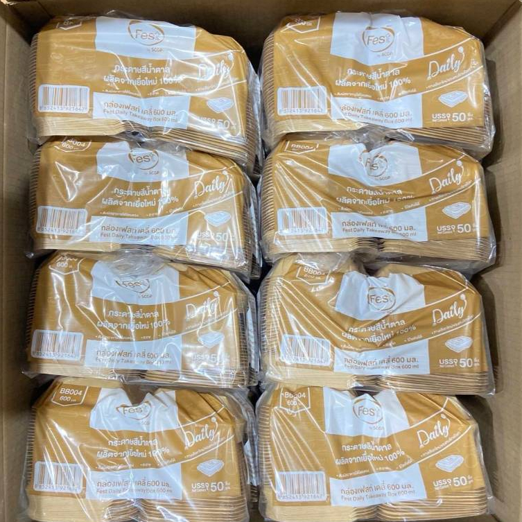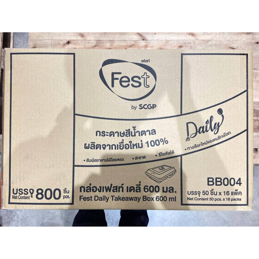 (ยกลัง) กล่องข้าวกระดาษ ขนาด 600 มล. สีน้ำตาล แบรนด์ Fest รหัส BB004