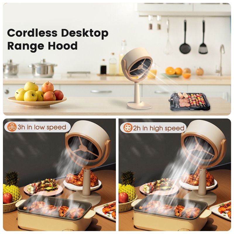 YOOGOO เครื่องดูดควันไร้สาย ขนาดเล็ก แบบพกพา พัดลมดูดควัน 3000mah ชาร์จUSB เครื่องดูดควันตั้งโต๊ะ ดูดควันไฟฟ้าRange Hood