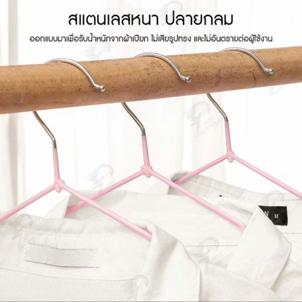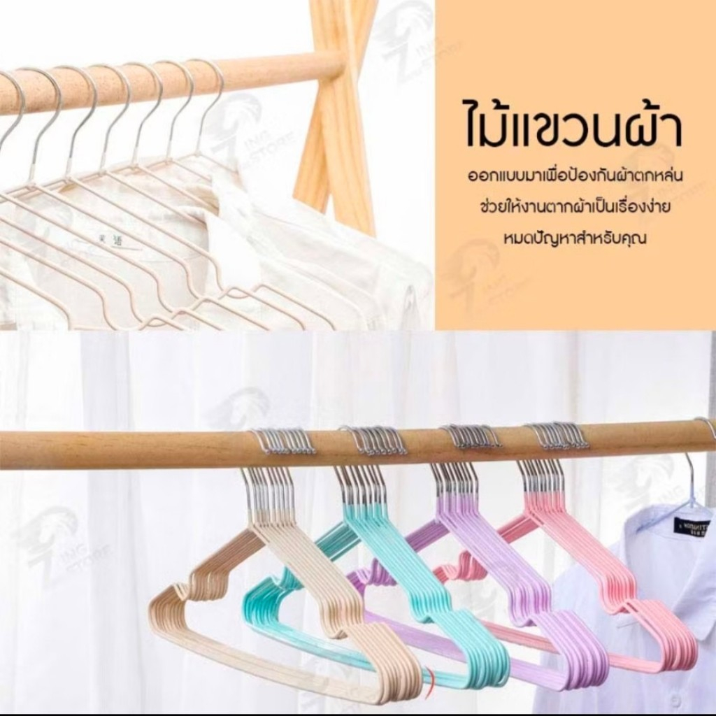 ไม้แขวนเสื้อ แบบหนา 40.5cm ( 1แพ็ค10ชิ้น) ไม้แขวนเสื้อสแตนเลส เคลือบซิลิโคน กันผ้าลื่น พร้อมส่งTH
