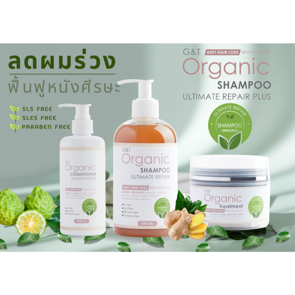 [ SET ] ชุดแชมพูออร์แกนิค ลดผมร่วง สูตรขิง+มะกรูด G&T Organic Ultimate Repair (แชมพู + ครีมนวด+ ทรีตเม้นต์)