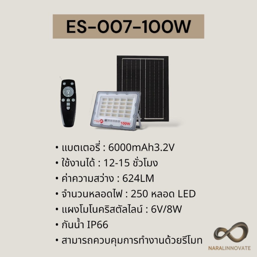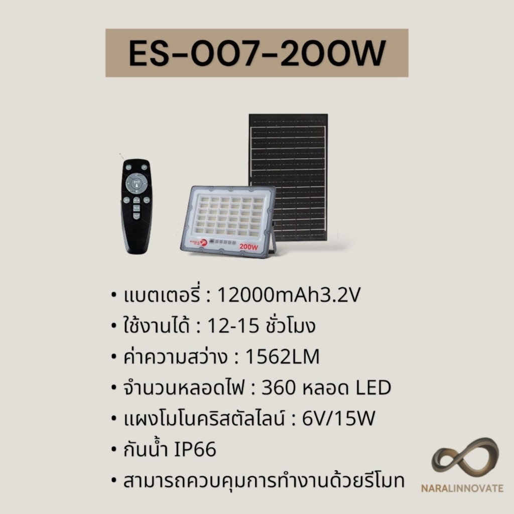 Eagle Star ES-007 ไฟโซล่าเซลล์ รุ่นปรับไฟ 2 แสง (White/Warm) ได้ กันน้ำ IP66 รับประกัน 2 ปี
