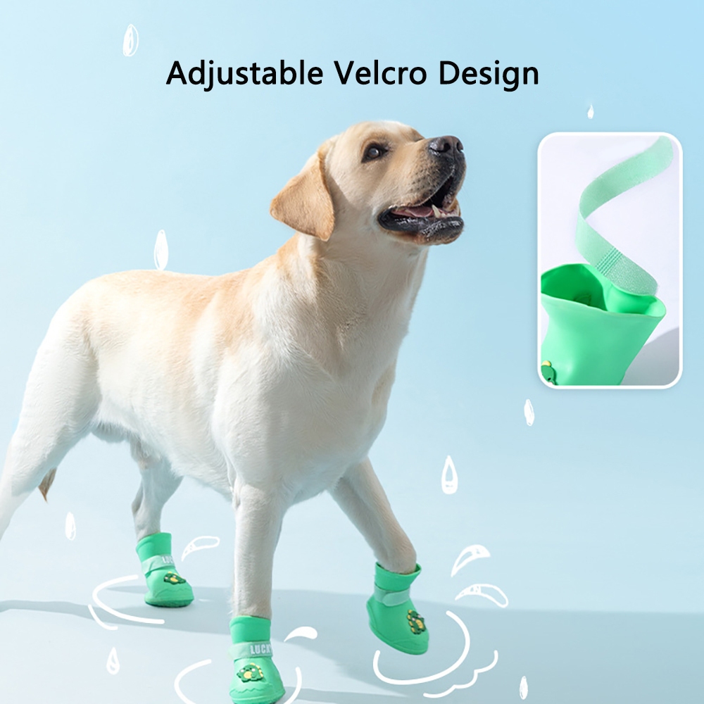 คิวเพท 4ชิ้น/ล็อตสัตว์เลี้ยงรองเท้ากันน้ําขนาดกลางขนาดใหญ่สุนัขปรับลื่นนุ่มรองเท้าฝนสัตว์เลี้ยงขนาดใหญ่กลางแจ้งเล่นเดินวิ่งปกป้อง อุ้งเท้า