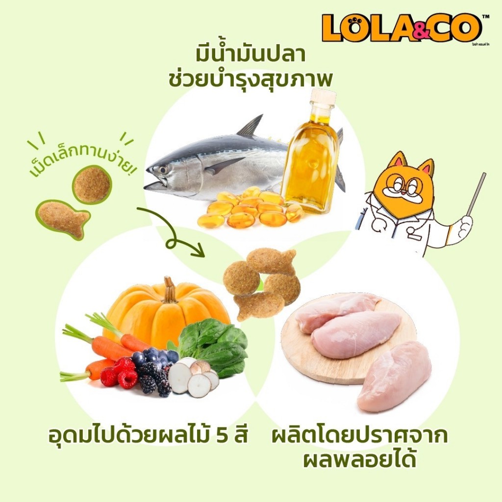Lola & Co อาหารแมวแบบเม็ด มี 2 สูตรให้เลือก เนื้อไก่ และ ปลาทูน่า ขนาด 7 kg ( ยกกระสอบ )