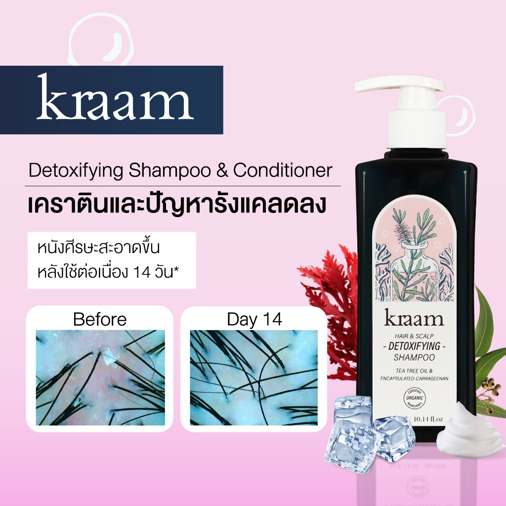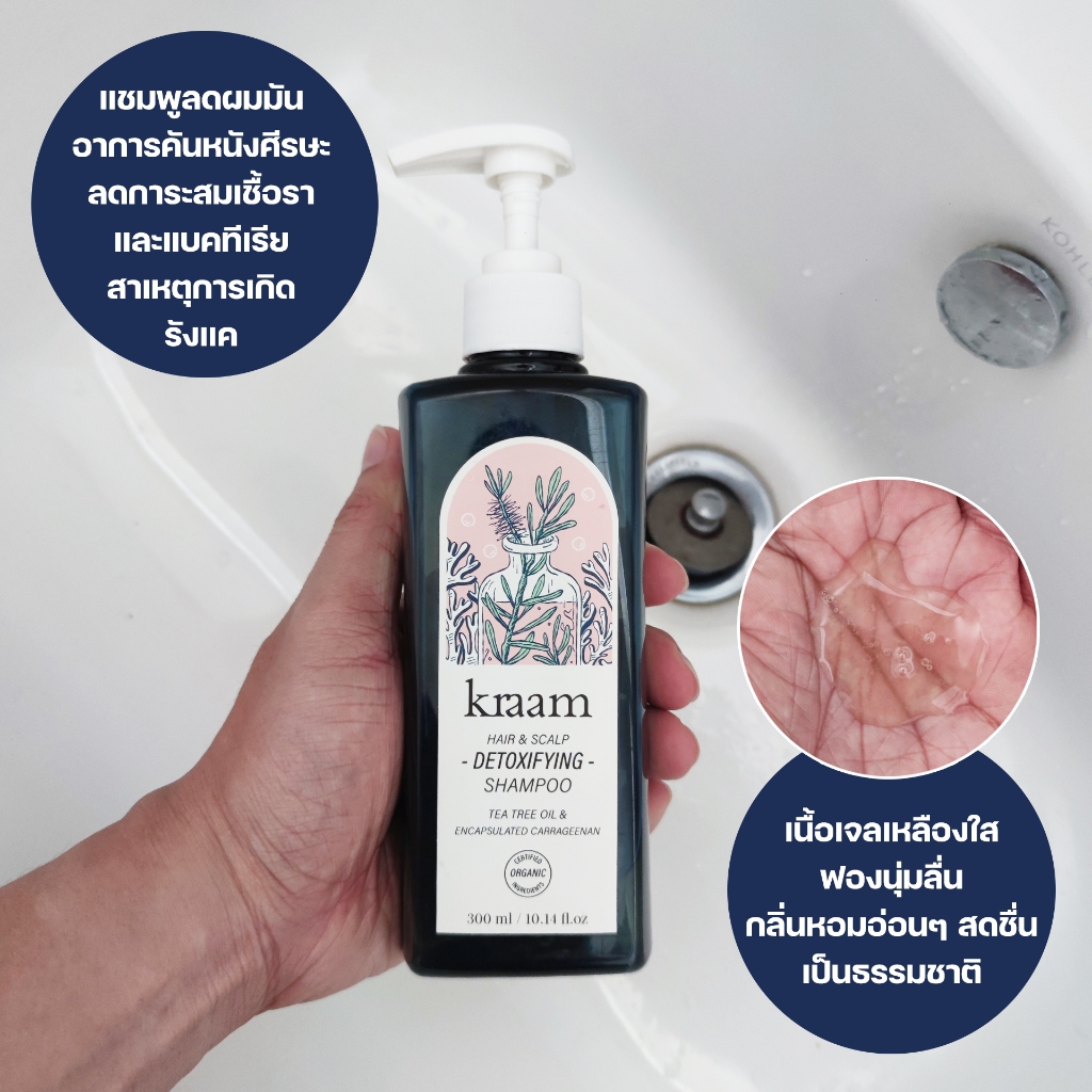 [ 1 แถม 1 ] Kraam Hair&Scalp Detoxifying Shampoo (Tea Tree Oil & Encapsulated Carrageenan)
