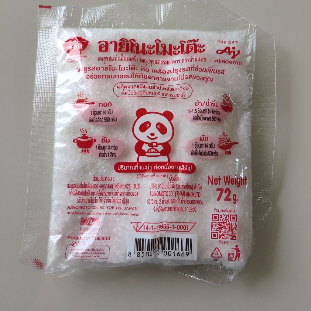 ผงชูรส ชูรส ผงปรุงรส อูมามิ ตรา ถ้วยแดง อายิโนะโมะโต้ะ ขนาด 72 กรัม จำนวน 1 ซอง