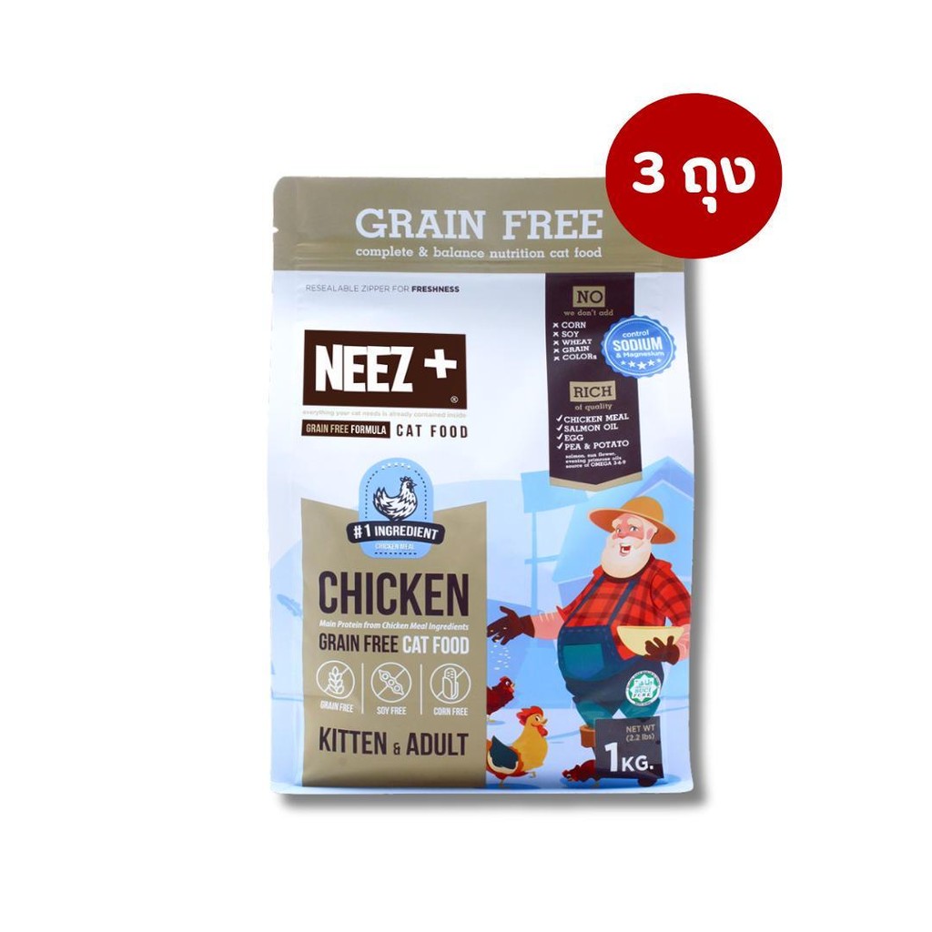 Neez+ นีซพลัส (1KG x 3ถุง) อาหารเม็ดเกรนฟรี น้องแมวทุกช่วงวัย ไม่เค็มบำรุงขน ตัวแน่น