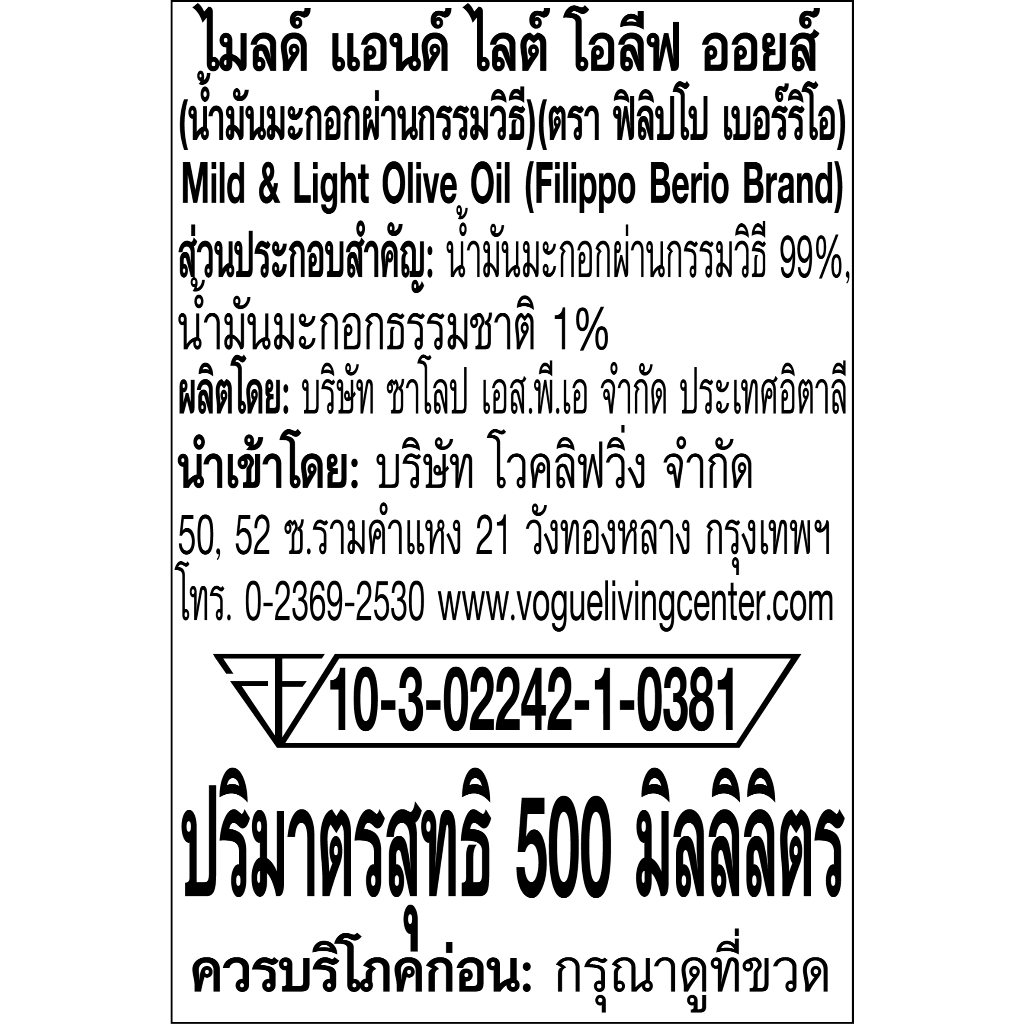 FILIPPO BERIO น้ำมันมะกอกผ่านกรรมวิธีไมลด์แอนด์ไลท์ 500 มล./F-FB-ML500